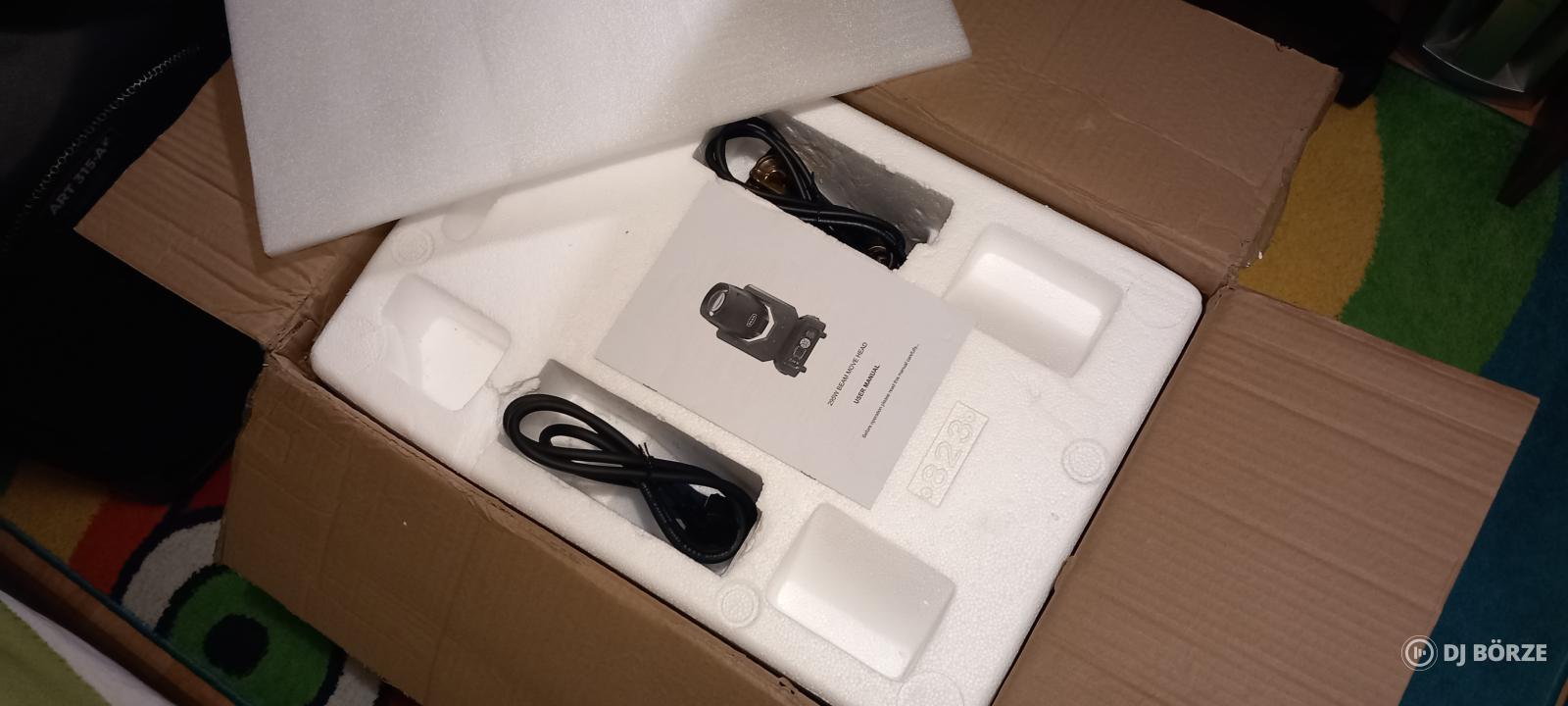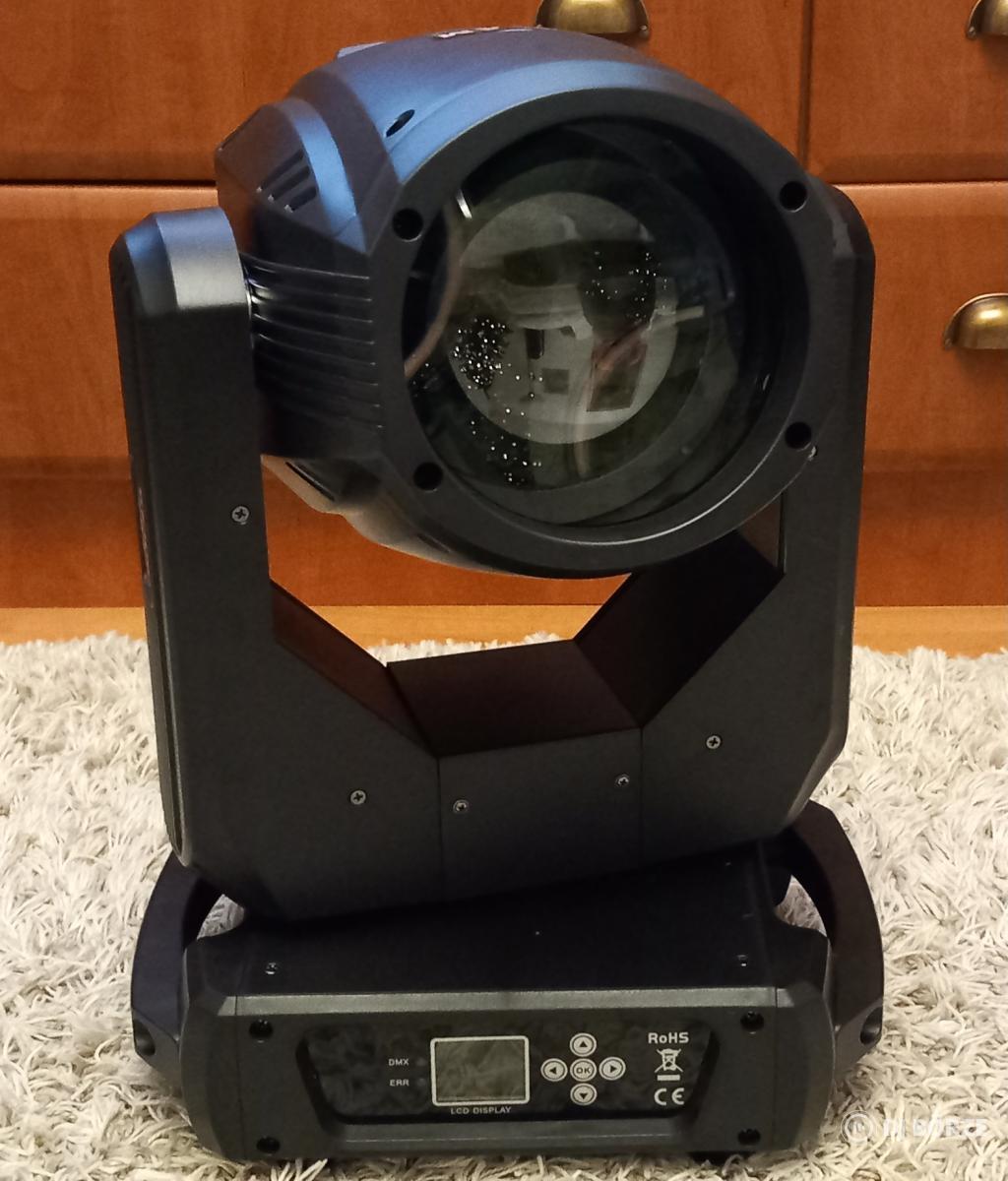 Eladó egy teszt kedvéért kicsomagolt 295W 14r beam robotlámpa. Főbb jellemzők: Bemeneti feszültség: AC 100V-240V 50/60Hz Vezérlőcsatornák: 16 DMX csatorna Működési mód: hangvezérlés, önjáró, master-slave, DMX512 Színkör: 14 szín + fehér (alap) fény Effektek: hatszínű effekt