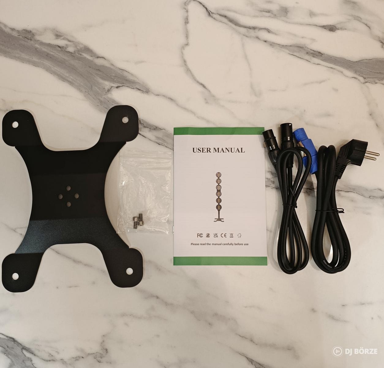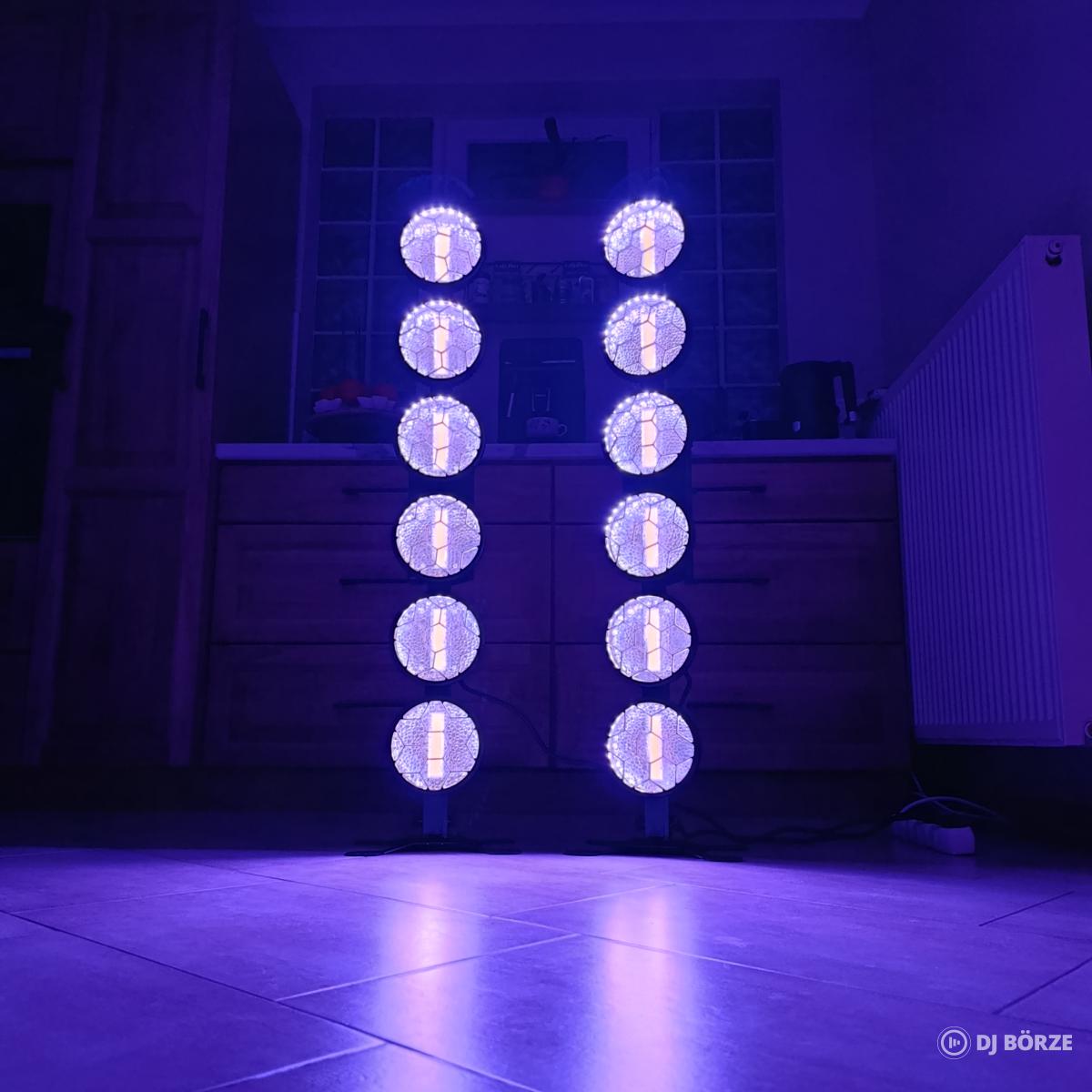 Fényforrás: 6 x 50 w arany fényű COB + 168 x 0,5 watt RGB Led