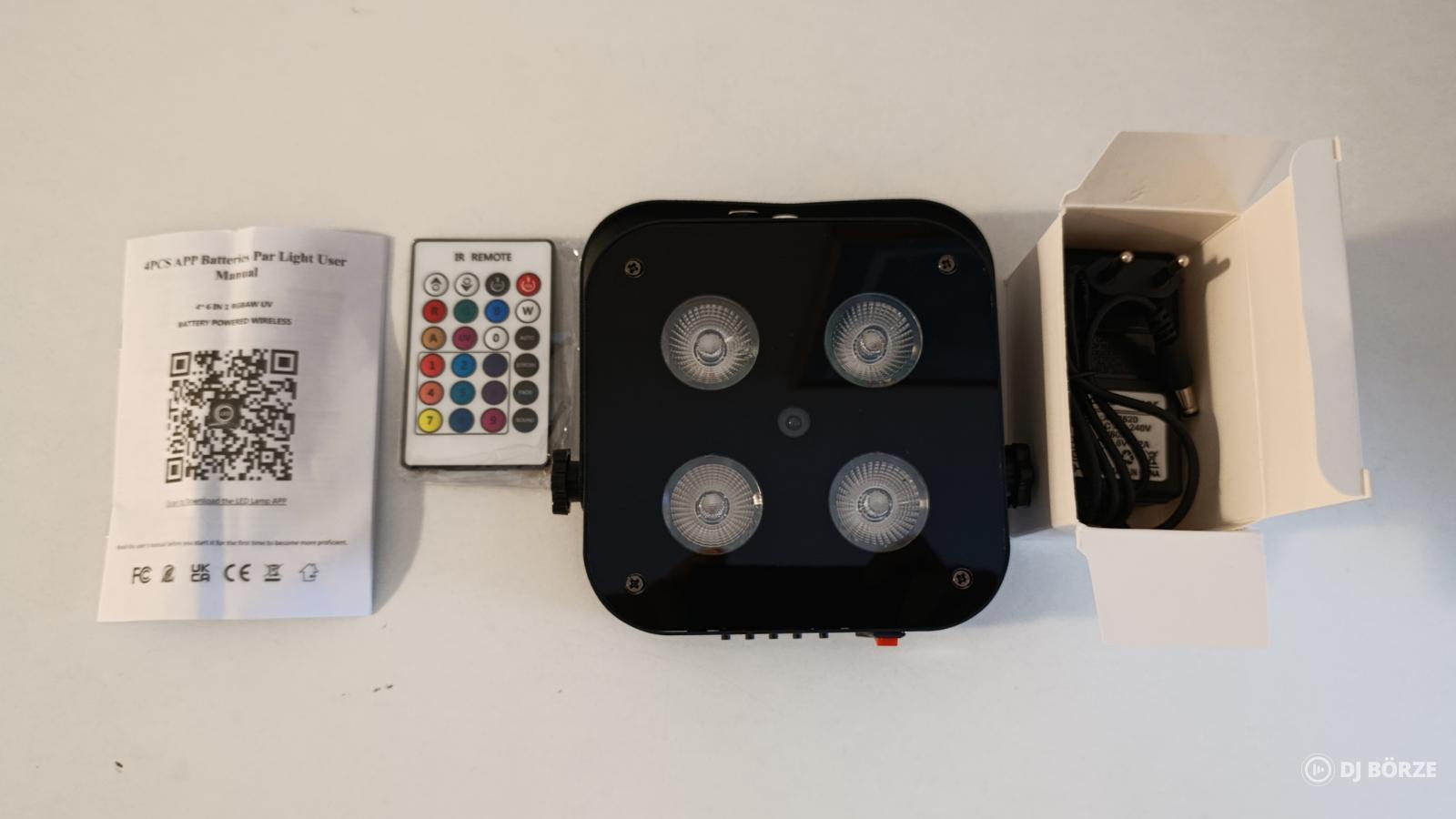 Fényforrás: 4 db 18 W-os RGBWA+UV LED