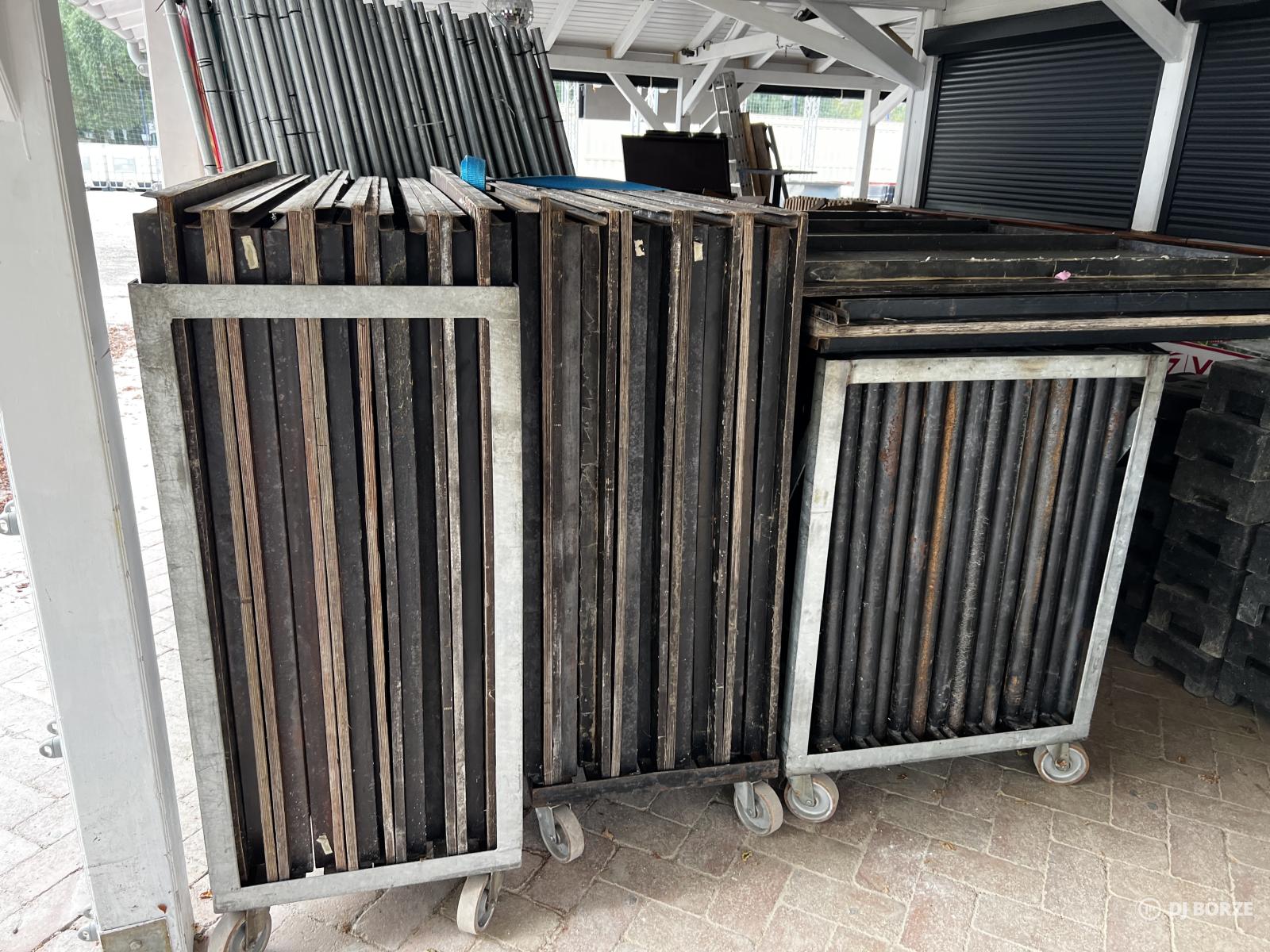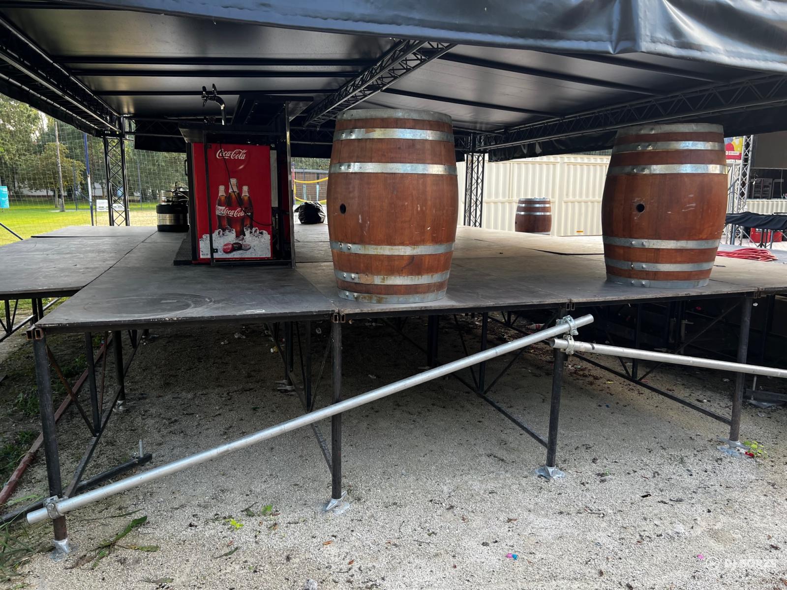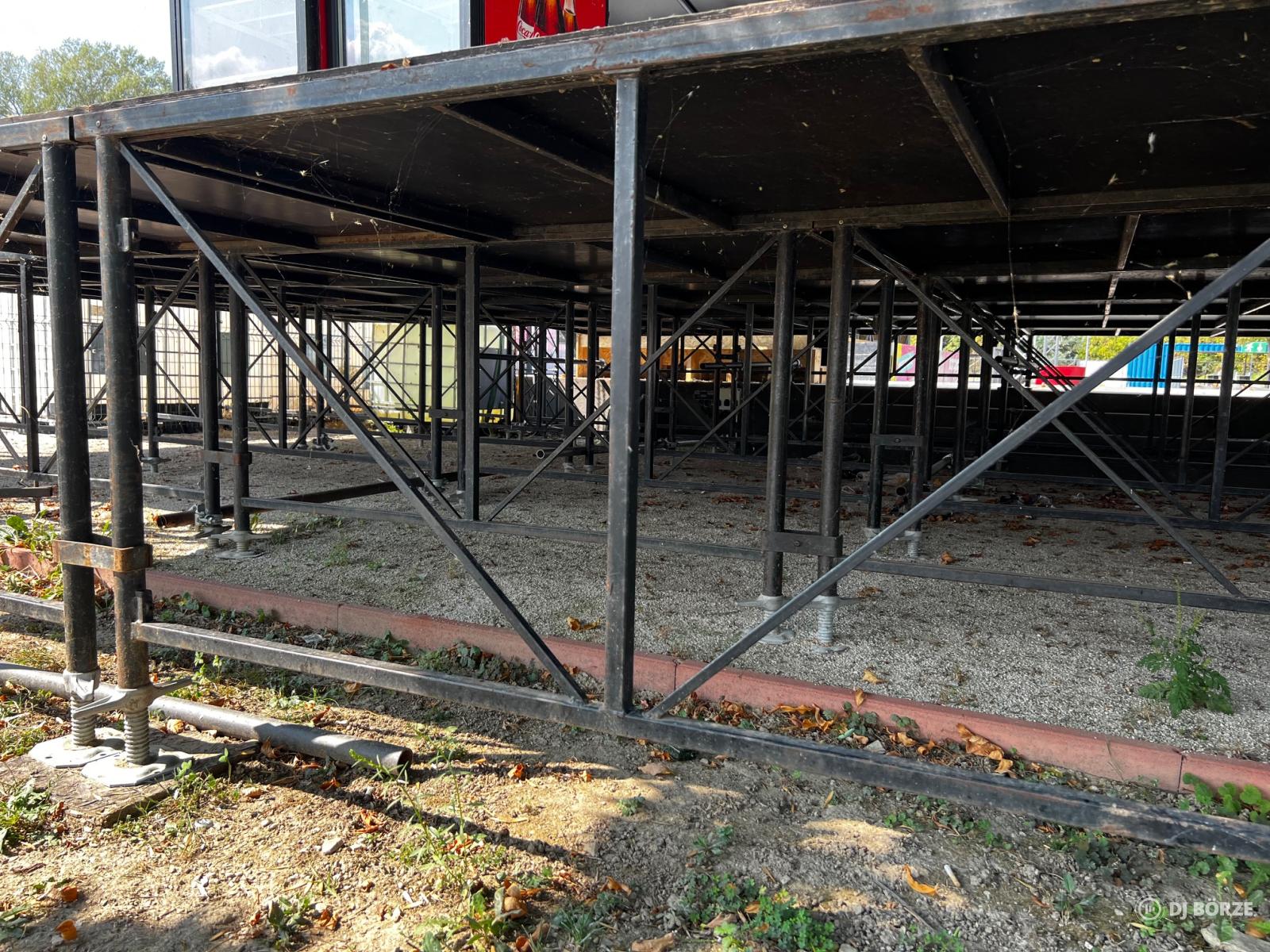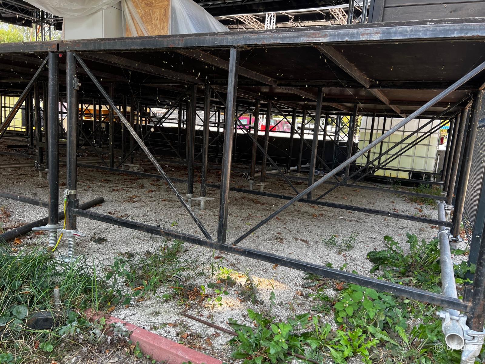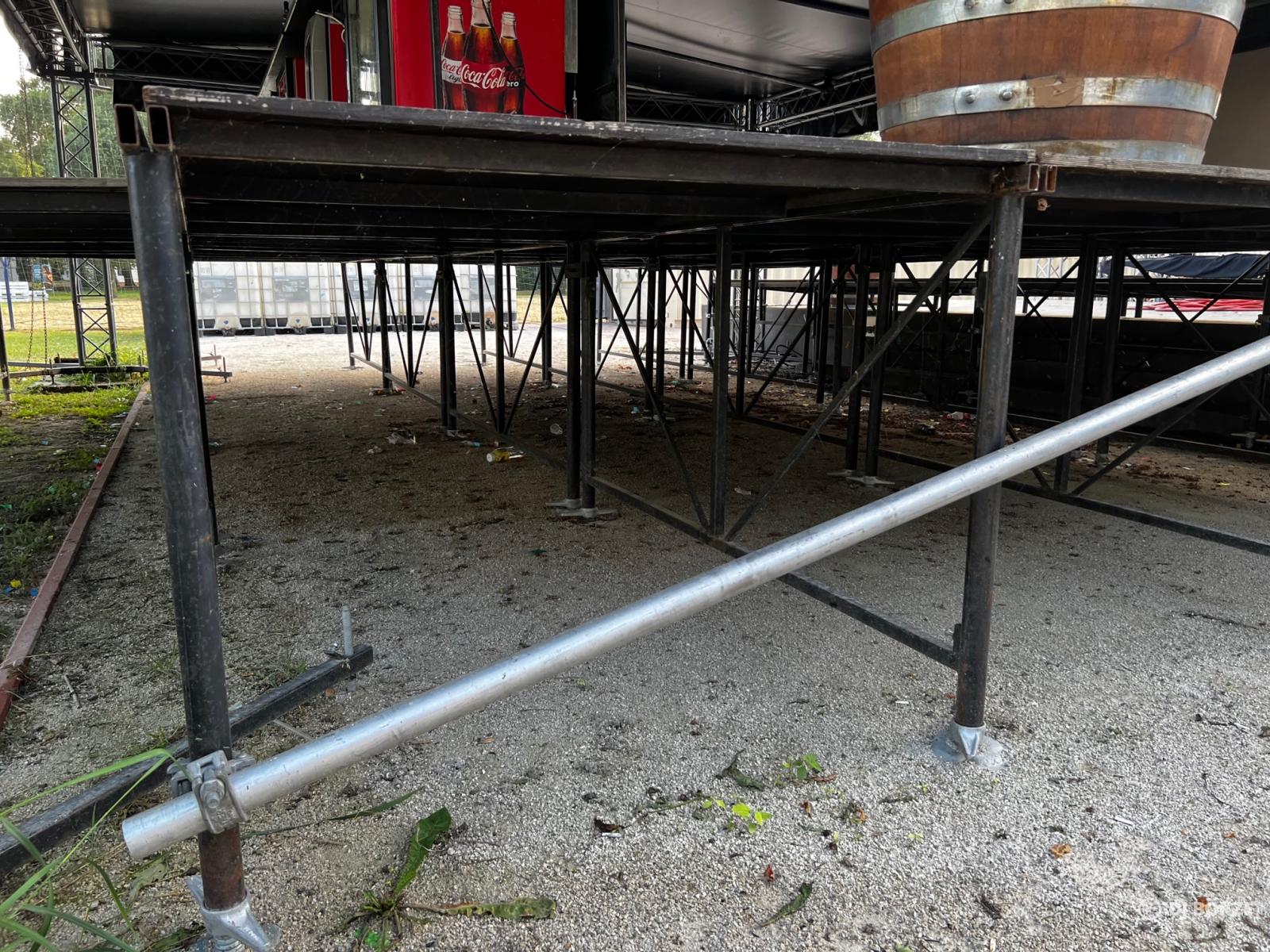 Eladó a képeken látható 80 nm komplett színpad rendszer. Magassága: 1.25 m plusz az állítható lábak magassága, a felülete csúszásmentes kültéri vízálló, impregnált. A lapok mért 2 x 1.25 m. A színpad egyedi készítésű, nagy teherbírású, inkább fix telepítésre/helyszínre ajánlott. Minden szükséges tartozékával, LAYHER 0-50 cm szintezőlábakkal, 2 db önszintező lépcsővel, szállítókocsikban, azonnal munkára fogható. Az ára minden szükséges tartozékot, lábat, színező talpat, szállító kocsit, lépcsőt stb. tartalmaz. Lépcső építéséhez kisebb lábak is rendelkezésre állnak, ezeket ajándékba adjuk a komplett rendszerhez.