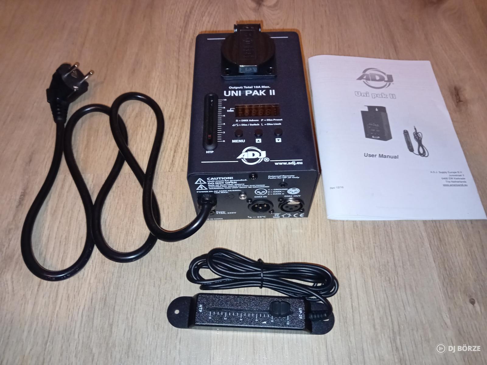 Garanciás, hibátlan állapot. Infó 1 csatornás fényerőszabályzó Távirányító Fényerő-szabályozó és kapcsoló kimenőfokozat Kompakt, 1 csatornás DMX Fényerő-szabályozó csomag Csatornafader előmelegítéshez Szabványos DMX 512 Állítható fényerő- vagy kapcsológörbe 3 tűs XLR be-/kimenet Max. energiafogyasztás: 10 A Tápellátás: AC 230V, 50 Hz Méretek: 102 x 95 x 198 mm Súly: 1,1 kg