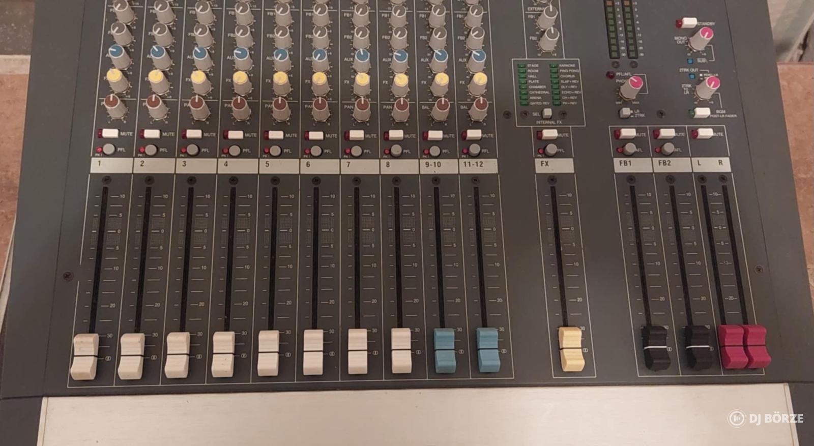 2x500 Watt teljesímény 4 és 8 Ohmon egyaránt. 8 mono, 2db kettős sztereo csatorna, beépített - MIDI-vel is paraméterezhető - digitális effekt processzor. Csatornánként 5 sávos EQ, parametikus középpel, kapcsolható fantomtáp, 3 aux, insert pont, 100Hz szűrő kapcsoló a mono csatornákon. A kimeneten 4 sávos parametrikus EQ, Main és mono vonal kimenet, fx return. Sub hangfal meghajtására alkalmas kimenet, (nem kell hozzá crossower). A Tajti Musicban átnézve, kitisztítva volt 2-éve, azóta csak tartalék volt.