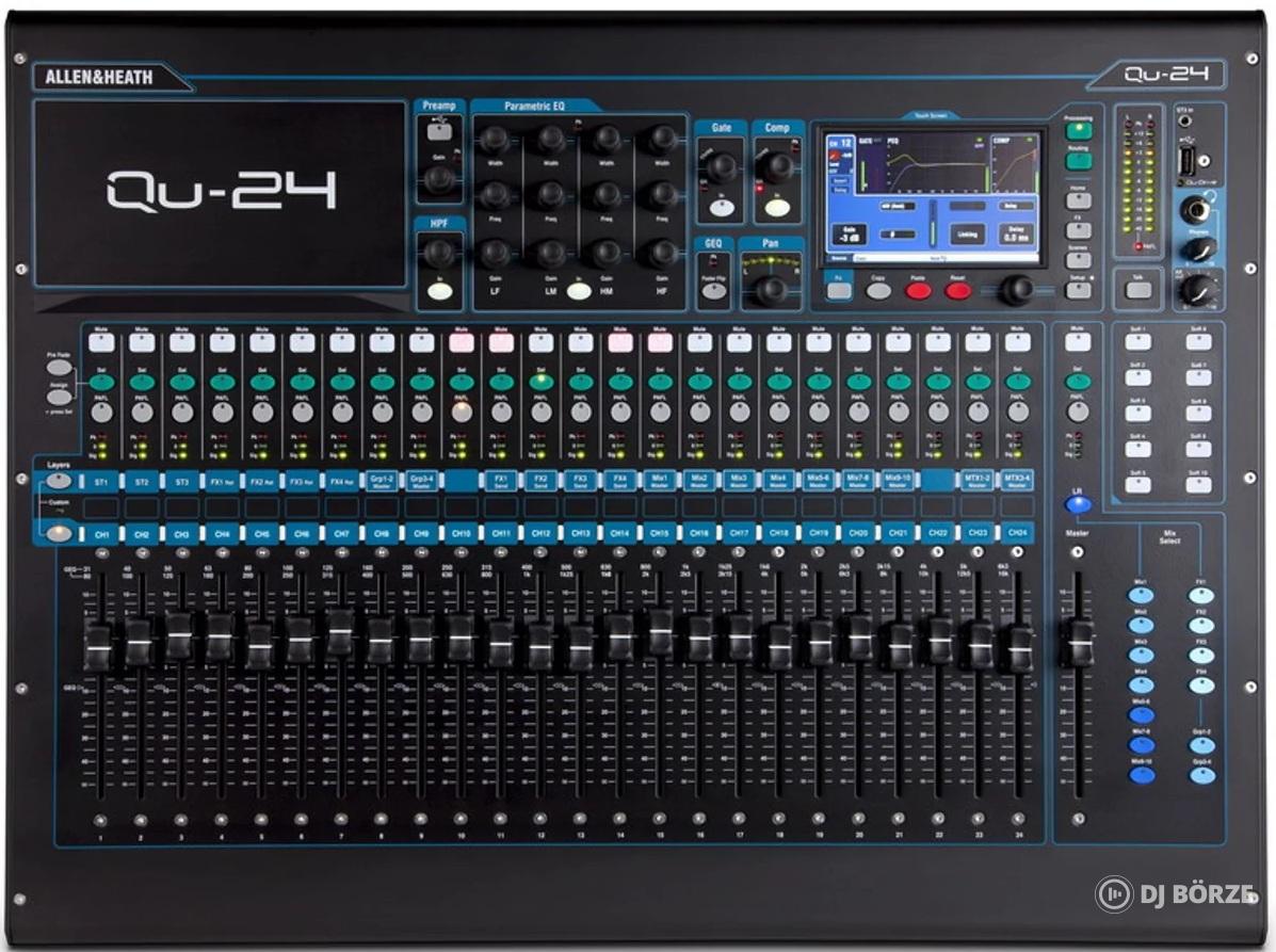 Eladó a képeken látható Allen & Heath QU-24 keverő. Első tulajdonostól, fix telepítésből, hibátlan állapotban, védőhuzatával, gyári dobozával.