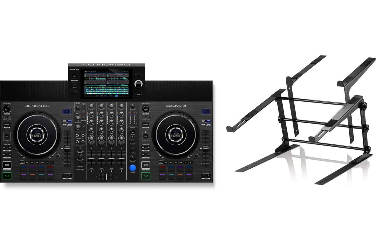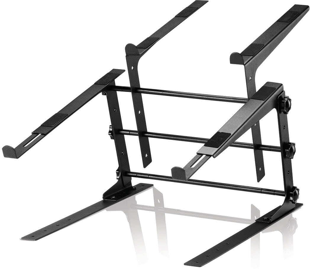 Stabil szerkezet, amelyet DJ-k számára terveztek, hogy laptopot és DJ-vezérlőt kényelmesen elhelyezhessenek.