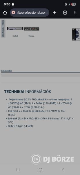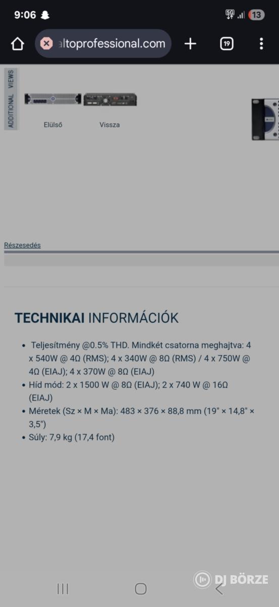 Eladó Alto végfok ! Típus : Alto D4 , 4x750Watt 4ohm ,4x340watt 8ohm ! Szép állapotban van és hibátlanul üzemel ! Ár : 110.000Ft Helyileg : Kocsér ! Helyben tesztelhető !