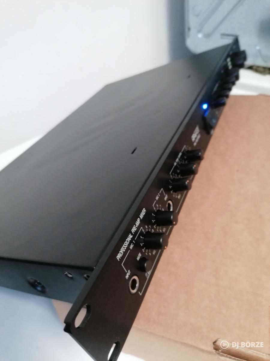 2 mikrofon bemenet, 6 sztereo bemenet, 2 sztereo (2 Zóna) kimeneti csatornája van . MIC1 bemenet prioritás kapcsolóval, háromsávos EQ-val. Kapcsolható phantom tápegység. A sztereo bemeneteket egy forgókapcsolóval tudjuk kiválasztani.