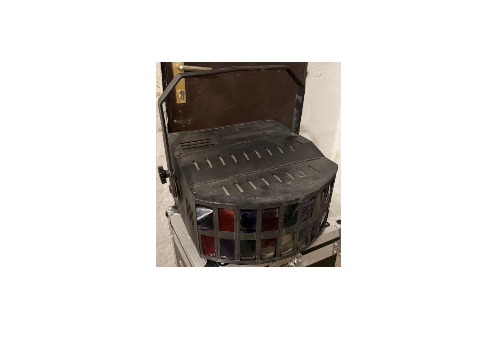 Eladó egy retro fényeffekt. A háza újrafestve. Az izzó új benne. (500W vonalizzó). A lencsékre tudok adni színszűrőket. Csere nem érdekel.