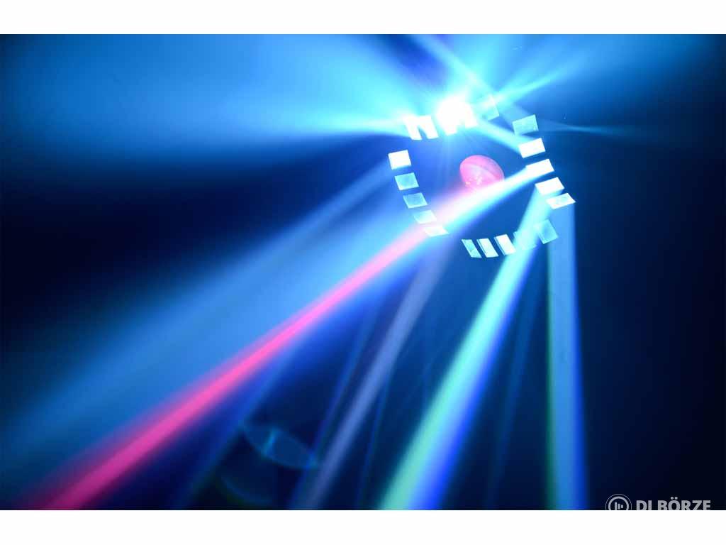 A fény 2 effektust egyesít egy eszközben. A Moonflower effektus központjában található, és 64 RGBAW LED-et tartalmaz. A quad derby effekt 2 erős 10 W 4 in 1 RGBW LED-del van felszerelve. Mindkét effektus külön beállítást kínál. A Master / Slave funkciónak köszönhetően ideális választás DJ és hordozható alkalmazásokhoz. Ezen felül rendelkezésre áll egy 4 és 10 csatornás DMX mód.