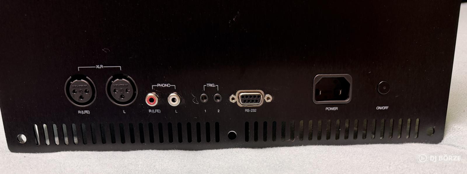 • Csatlakozók: 2 x XLR (szimmetrikus), 2 x RCA (Phono/LFE), RS-232 soros port, 12V Trigger.