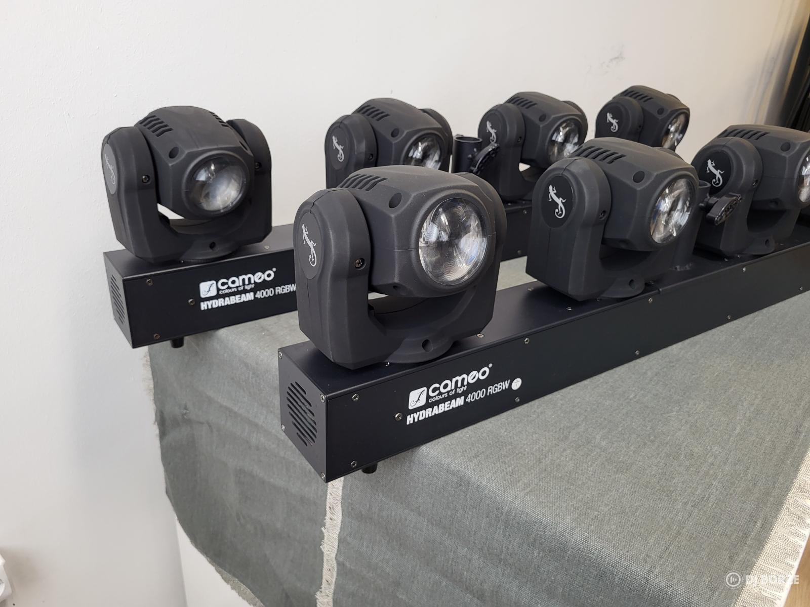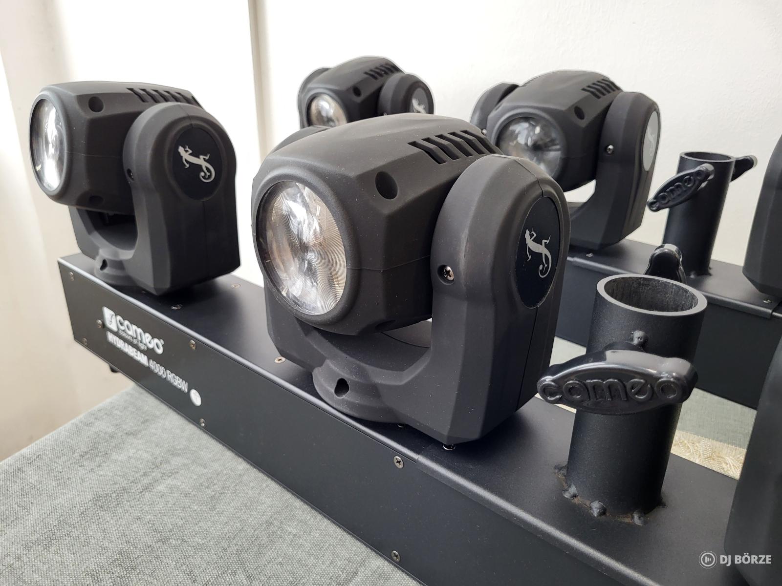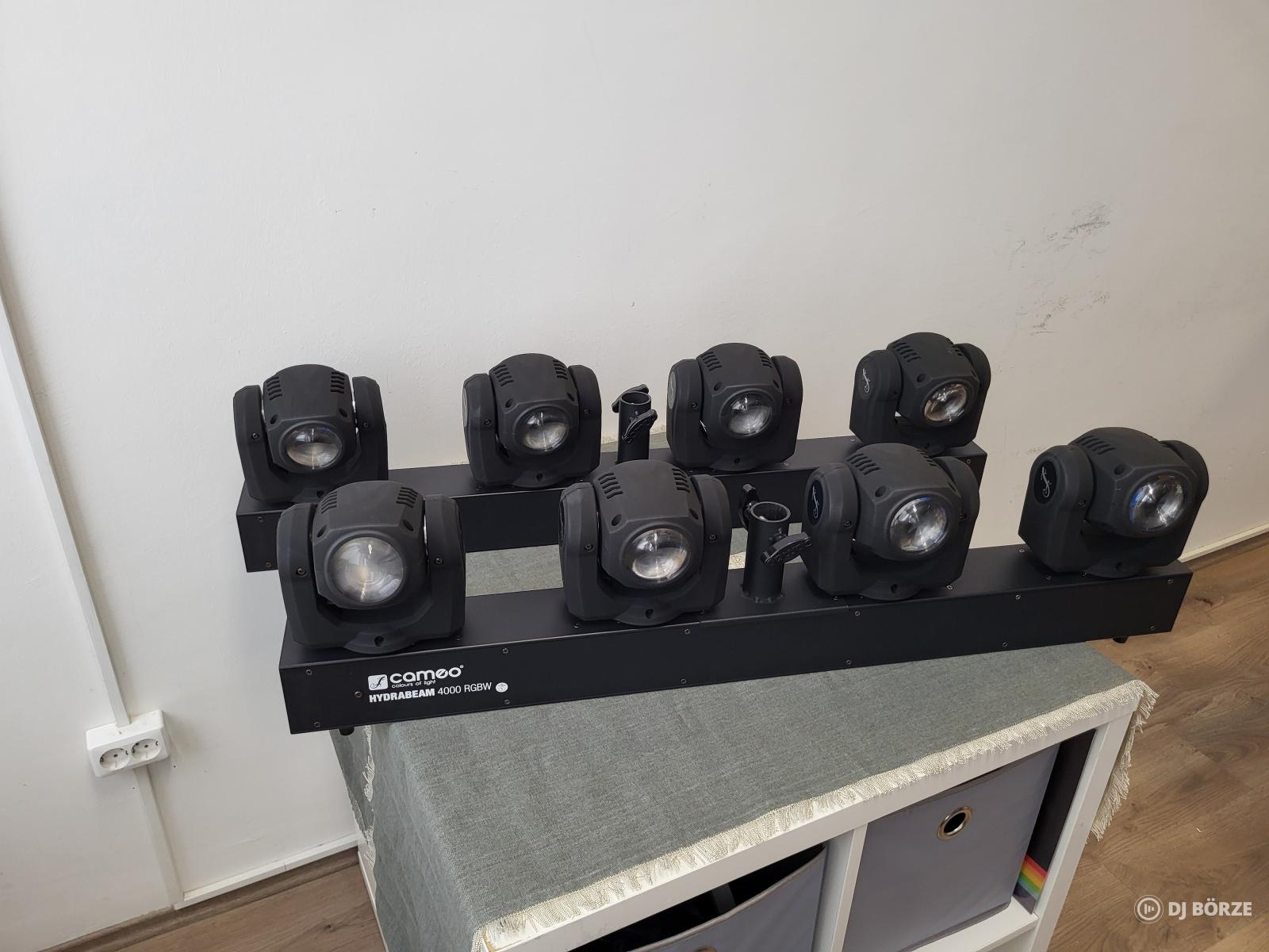 Eladó 2db teljesen új állapotú Cameo Hydrabeam 4000 négy önállóan vezérelhető, 100 cm-es talpra szerelt ultra gyors mozgófejes lámpasor dobozában.