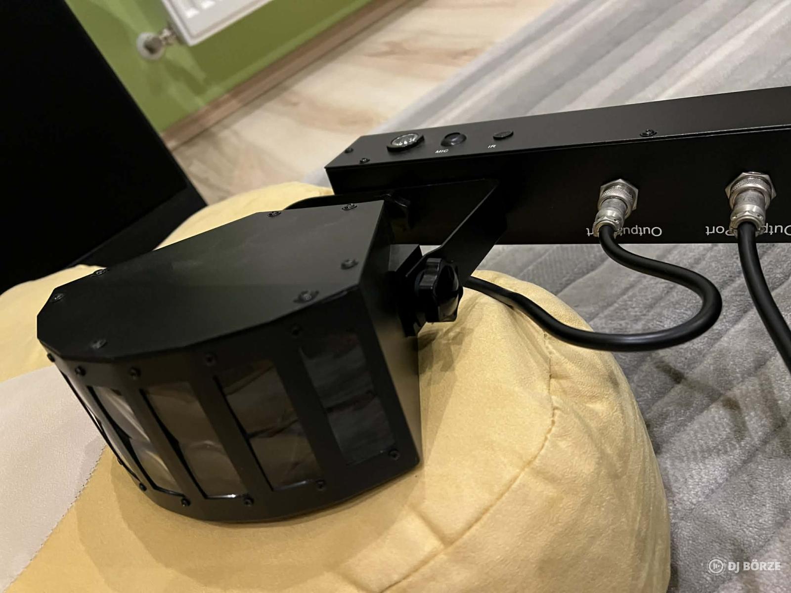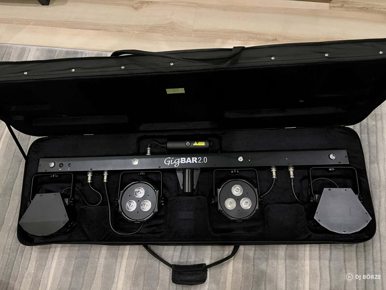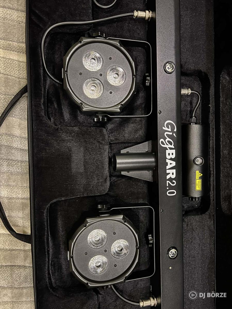 Nagyon megkímélt állapotú 4 in 1 komplett, DMX-es CHAUVET DJ GIGBAR 2 fényeffekt, amely az alábbi lámpákból (2 db 6 ledes RGB+UV PAR, 2 RGB Derby, 4db fehér+UV (strobi) LED, zöld-piros lézer) áll. A szett további tartalma: IRC 6 távirányító, vezeték nélküli lábkapcsoló, hordtáska, állvány.