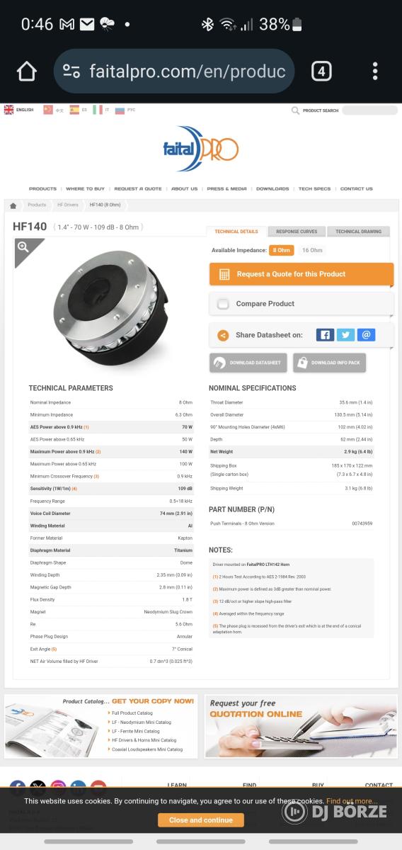 Eladó egy pár (2db) driver, neodímium mágneskörrel 74mm cséve átmérővel, 1,4" toroknyilással. További adatok a képek között. Ár 80eft/db.