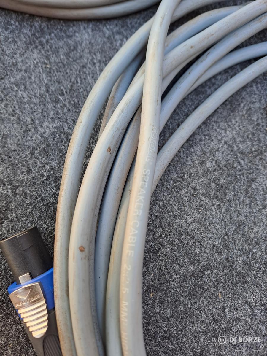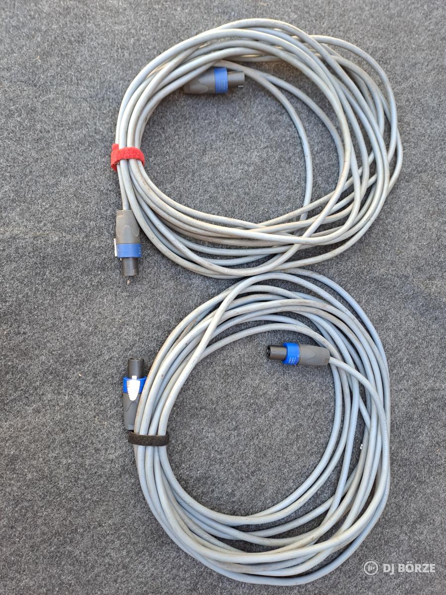 Eladó a fotón látható 2 db profi hangfalkábel. 10 méter hosszúak, 2x2,5mm highflex Cordial kábel, a végeken Neutrik NL4Fx 4 pólusú speakon dugókkal.