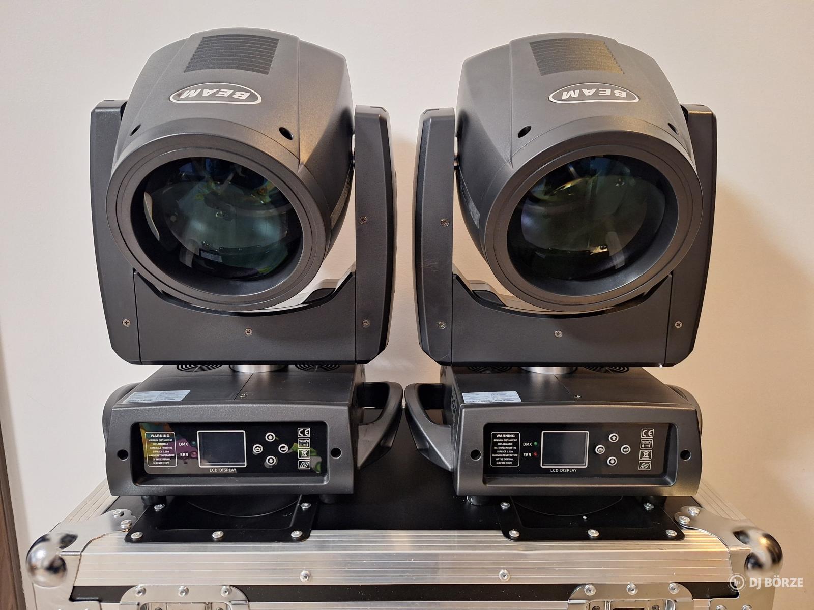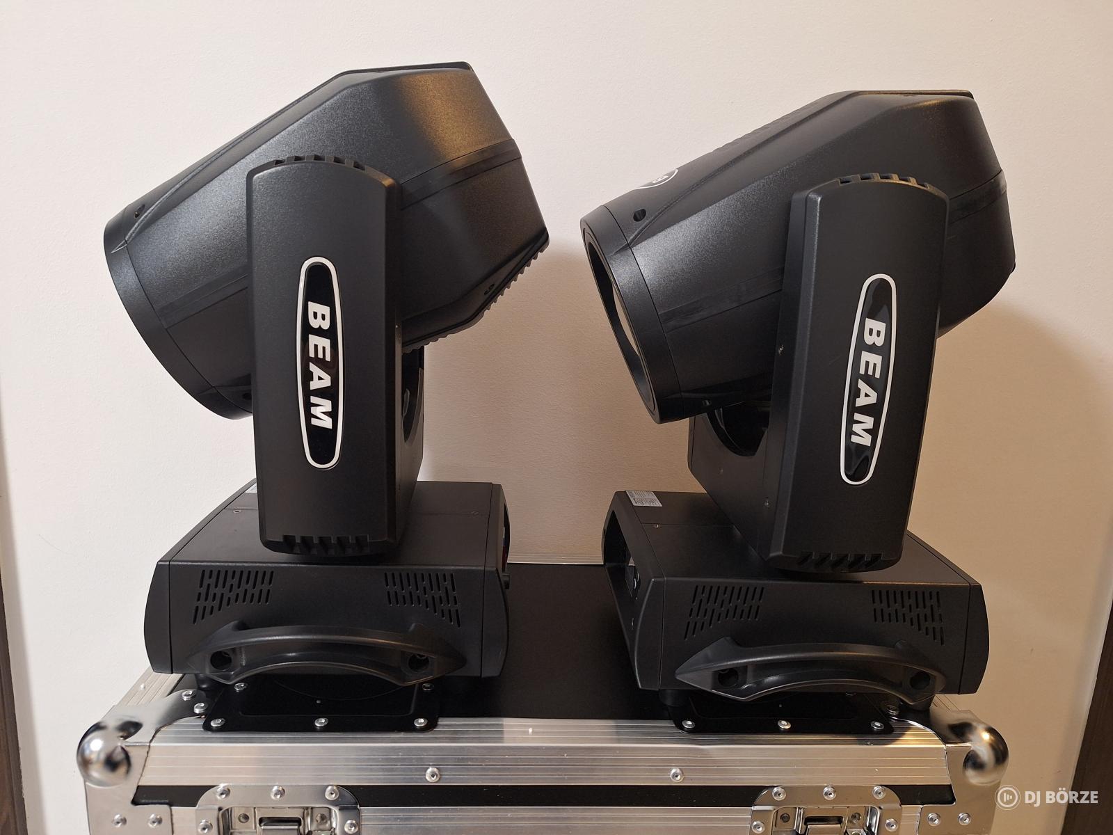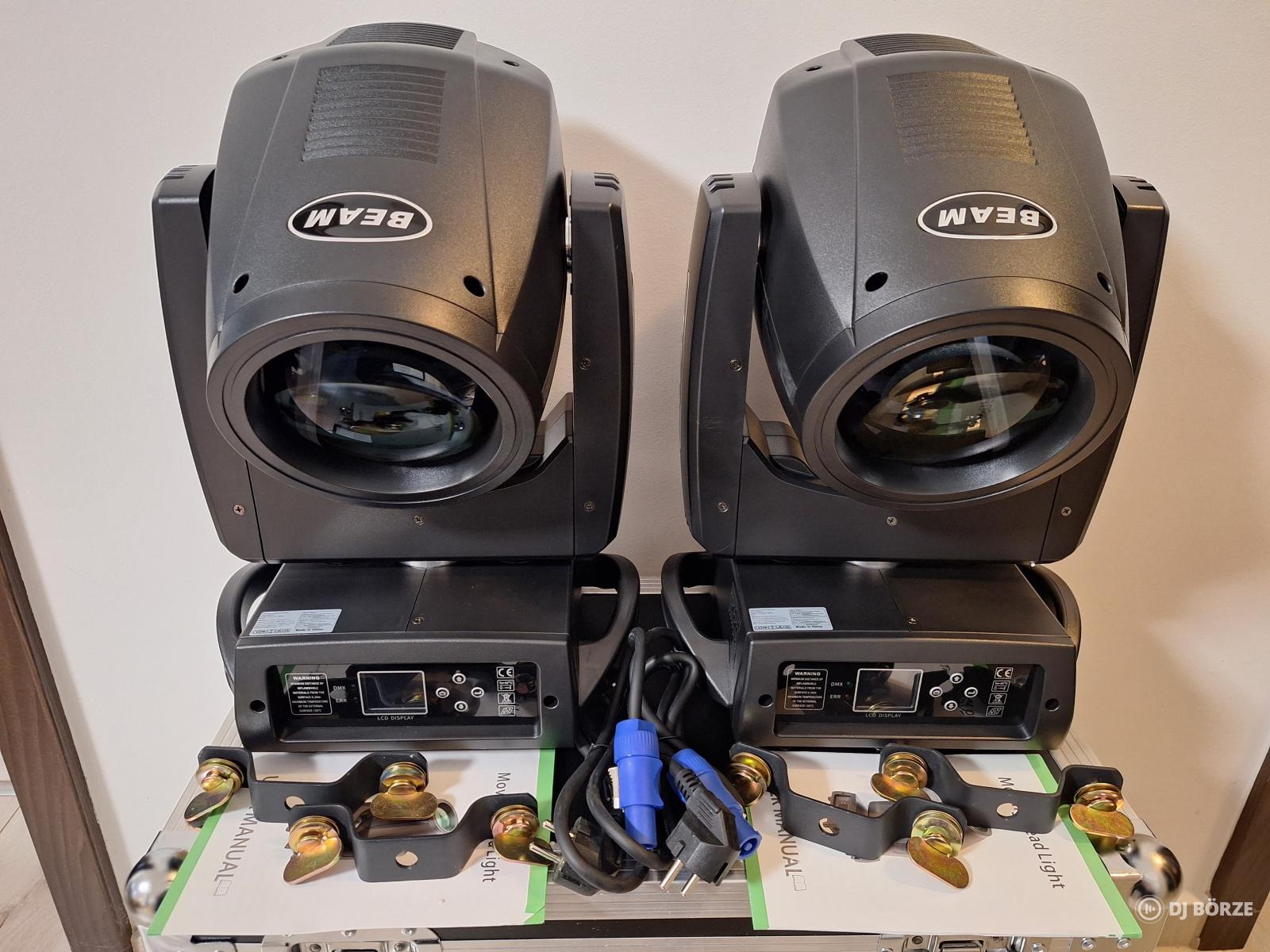 Eladó 2 darab új 230 watt halogén izzőval szerelt 7R robotlámpa saját 2-es gurulós rackkel. Kompakt méretű, kis súlyú, nagy fényerejű lámpa:
