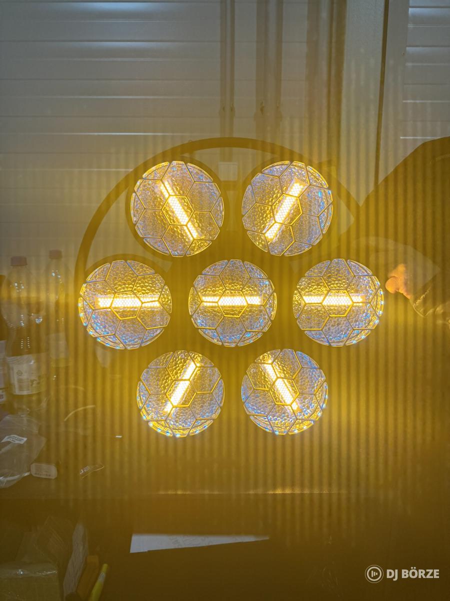 Specifikáció: Fényforrás: 7 x 50W arany COB + 189 db 0,5W RGB LED Megvilágítási szög: 120° LED élettartam: 50.000 óra Dimmelés: 0-100% lineáris Stroboszkóp: 1-20 Hz Üzemmódok: DMX, master-slave, hangvezérlés, önálló DMX csatornák: 16/37 CH Protokoll: DMX512, RDM Garancia: 1 év Megtekinthető és kipróbálható Nyíregyházán, kérésre postázom is! Az feltüntetett ár darabár!