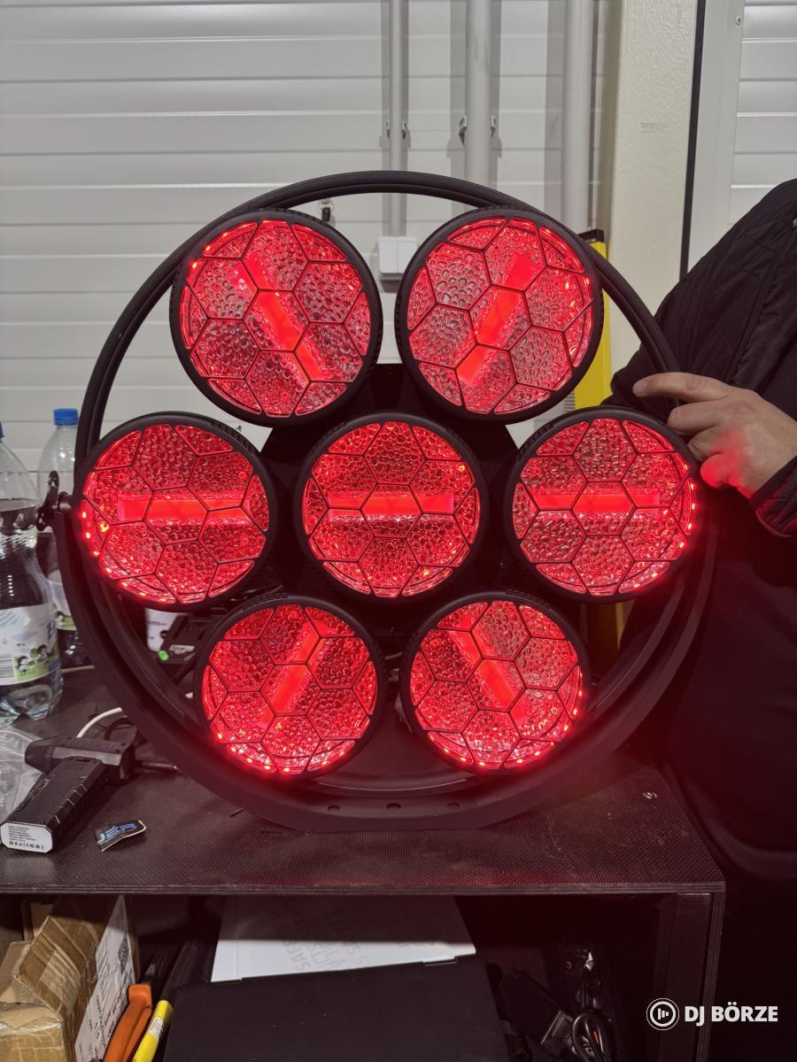 Specifikáció: Fényforrás: 7 x 50W arany COB + 189 db 0,5W RGB LED Megvilágítási szög: 120° LED élettartam: 50.000 óra Dimmelés: 0-100% lineáris Stroboszkóp: 1-20 Hz Üzemmódok: DMX, master-slave, hangvezérlés, önálló DMX csatornák: 16/37 CH Protokoll: DMX512, RDM Garancia: 1 év Megtekinthető és kipróbálható Nyíregyházán, kérésre postázom is! Az feltüntetett ár darabár!