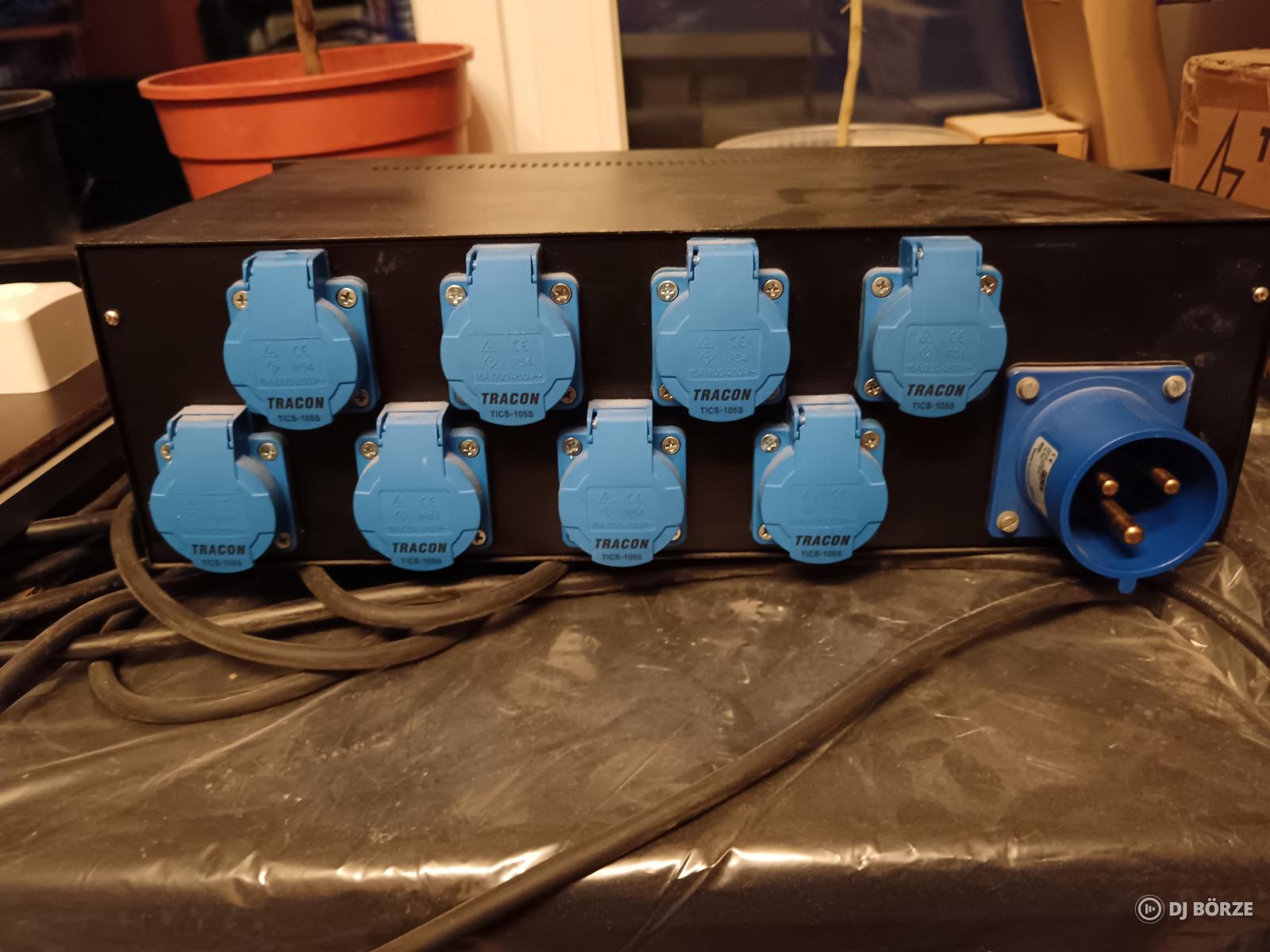 Eladó a képen látható egyedi építésű /3U rackbe építhető/ áramelosztó szerkezet. 32A betáp és 8x kimenet. Vészleállító kapcsoló.Bemenő fesz. és árammérés. Állítható áramkorlát 40A-ig. Ára: 60000Ft Fix ár! Érdeklődni a [email protected] címen. Helyileg Érden átvehető.