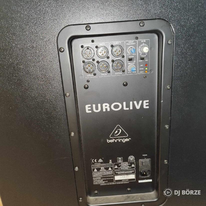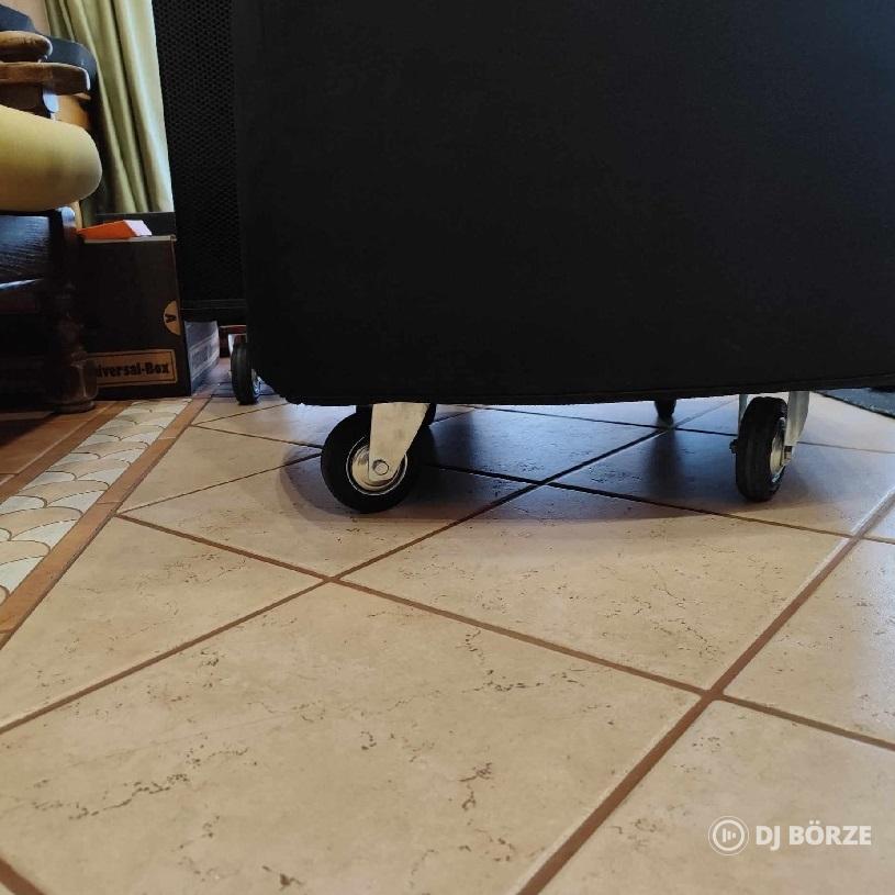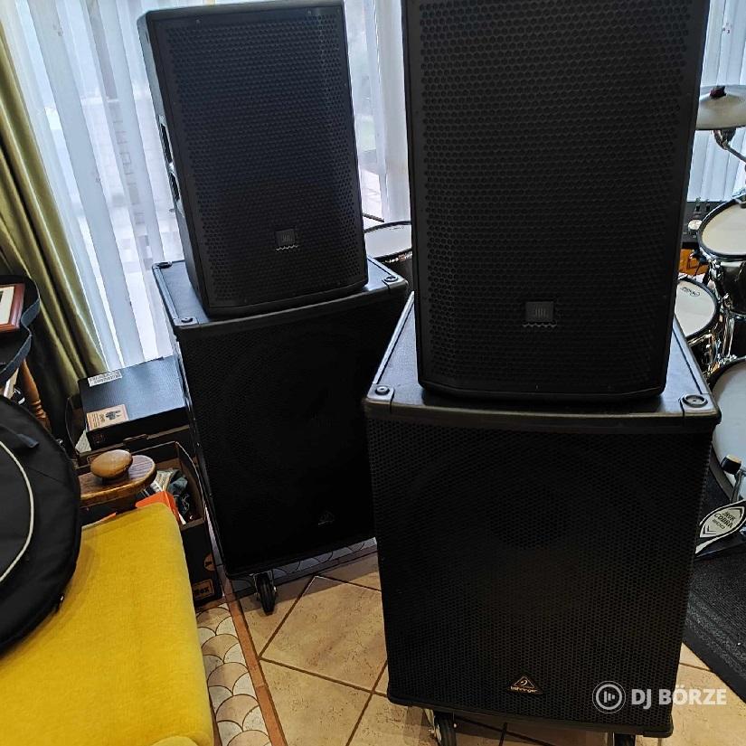 2 db aktív sub: Behringer eurolive B1800XP, egyenként 3000 W. Alján kerekekkel és huzattal.