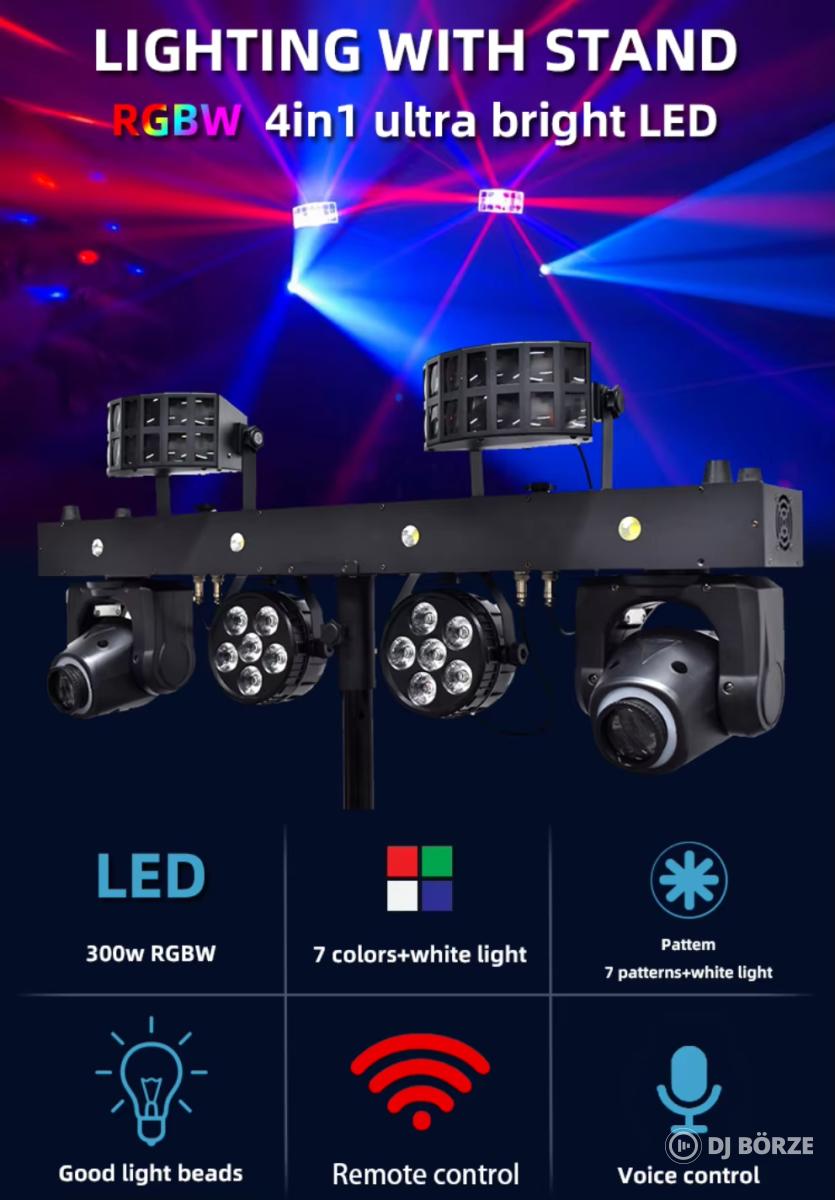 Vezérlési módok: DMX512, automatikus, hangvezérlés, master-slave