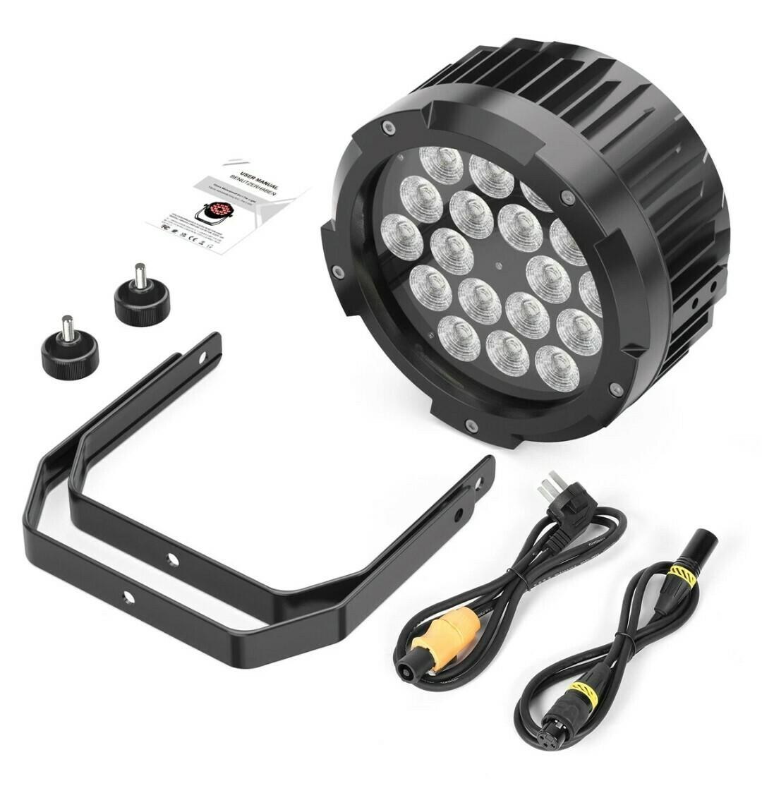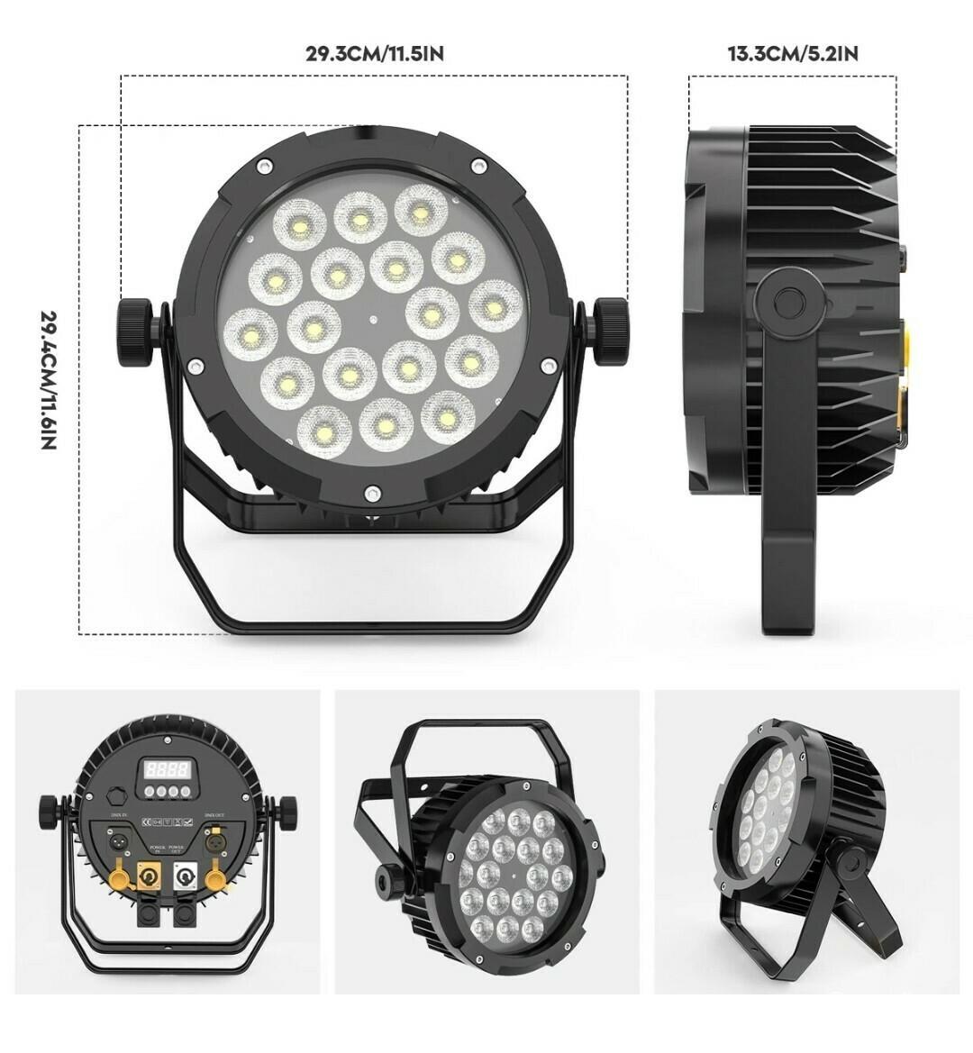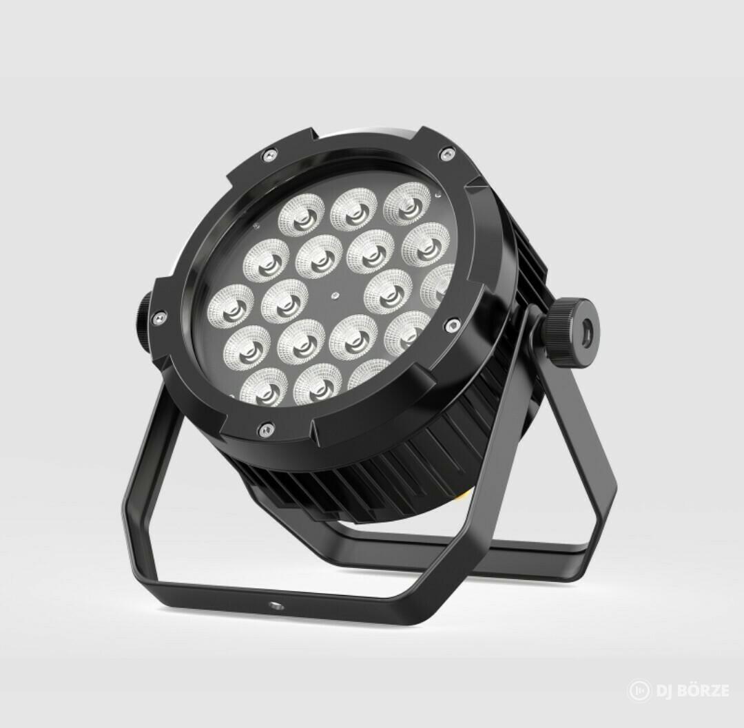 Eladó számlával, garanciával, új 18x18 watt teljesítményű, fém házas, vízálló IP65 minősítésű RGBWA+UV PAR lámpák és hozzá való 4-es, gurulós rackek, ingyenes szállítással: