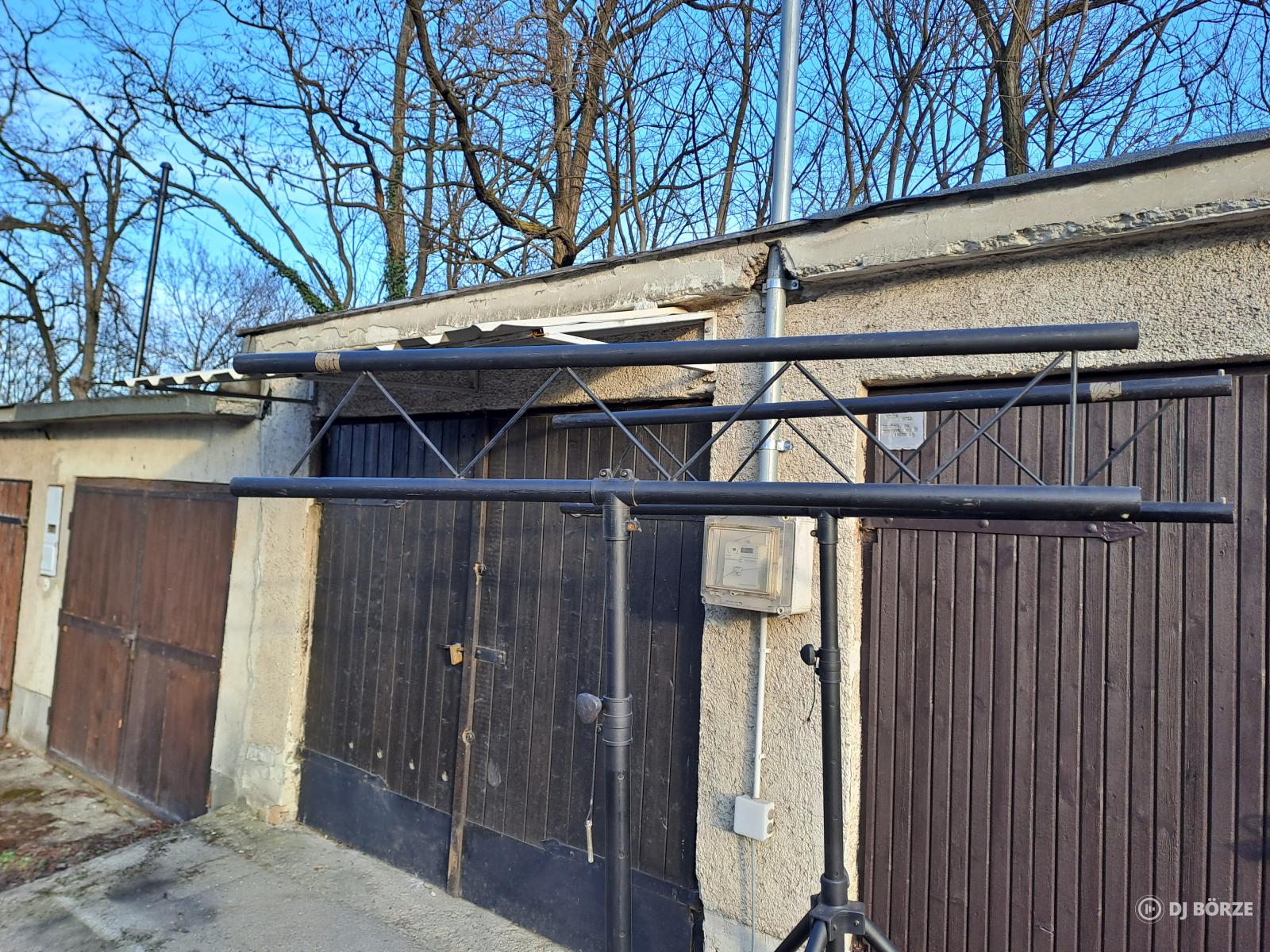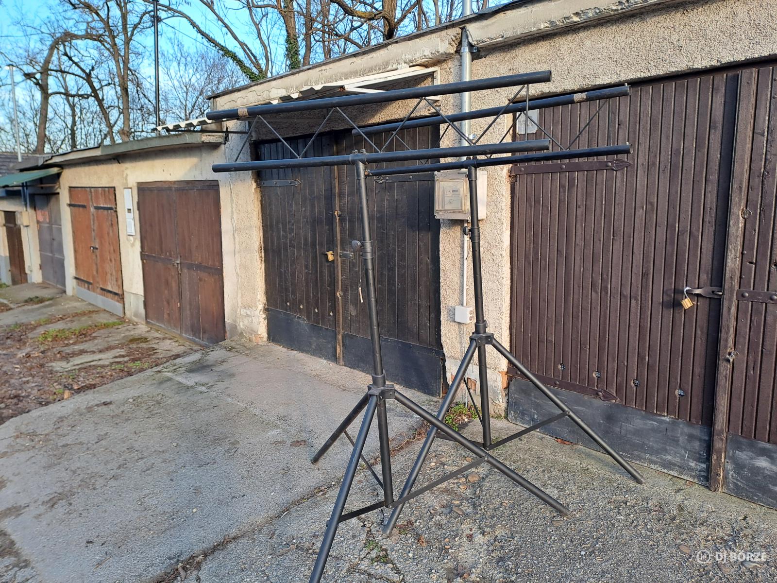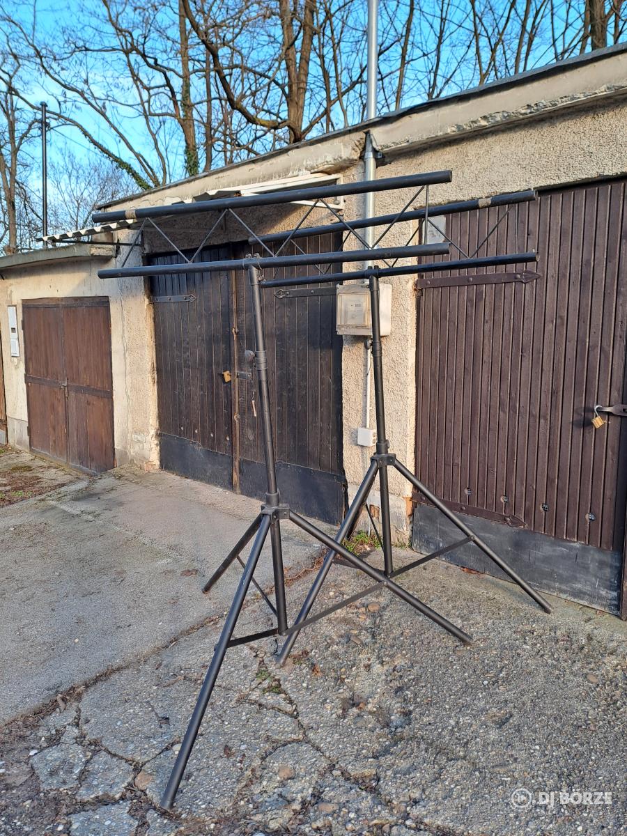 Eladó a fotón látható fényállvány és a hozzátartozó traverz. Nehéznek és erősnek tűnik, nem használtam, úgy került hozzám. Nincs információm a magasságáról és a teherbírásáról sem. Szerkezetileg ép, használt, szerintem hiányzik két rögzítő stift (pótolható). Összecsukva kb 150 cm magas.