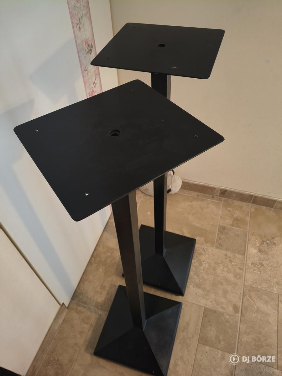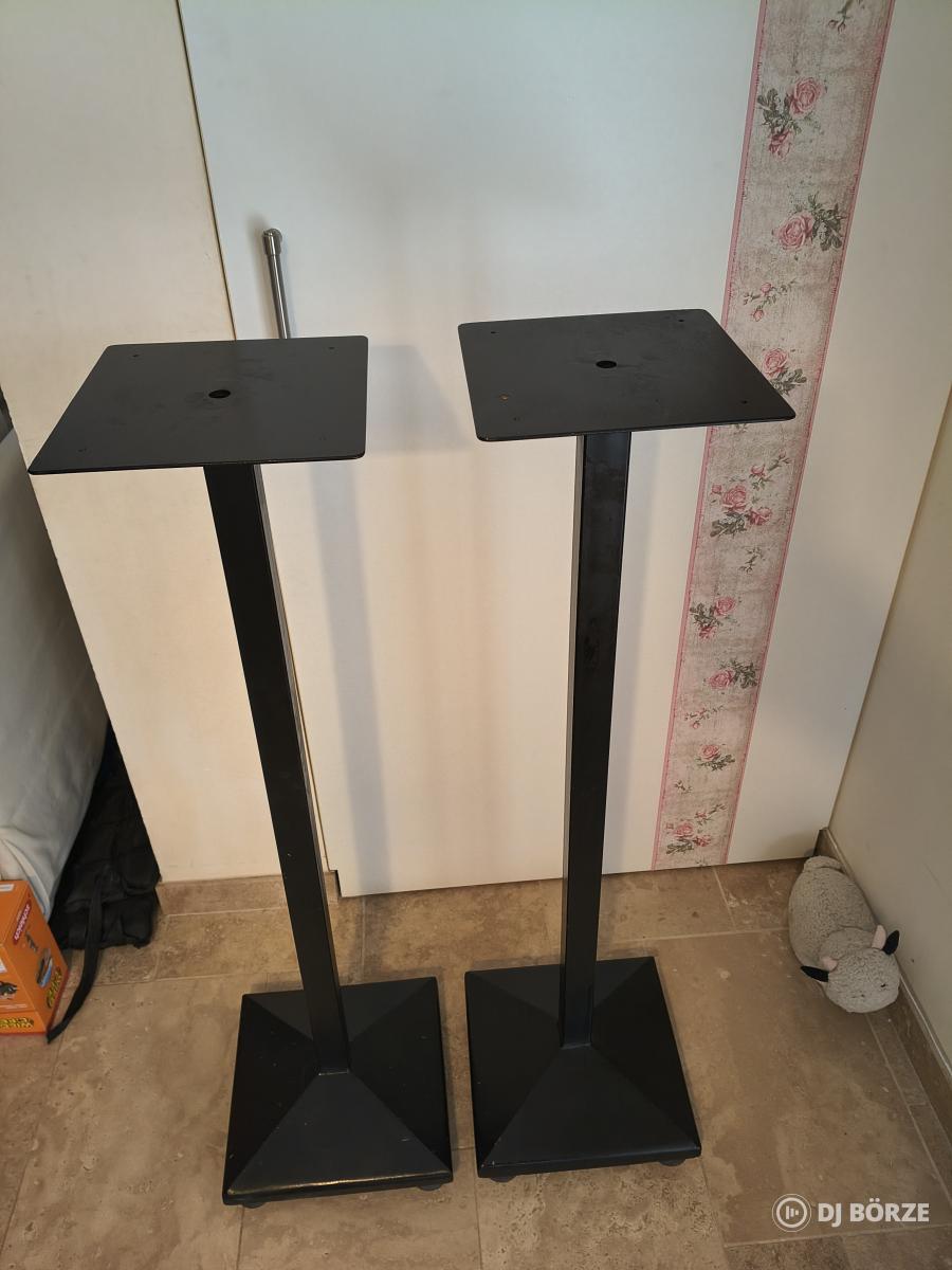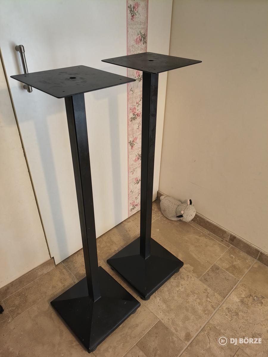 Hangfal állvány, gumi talpakkal, felső része forgatható. Méretei: magasság: 106 cm alap méretek: 30 x 30 cm hangfal tartó lap: 25 x 23 cm