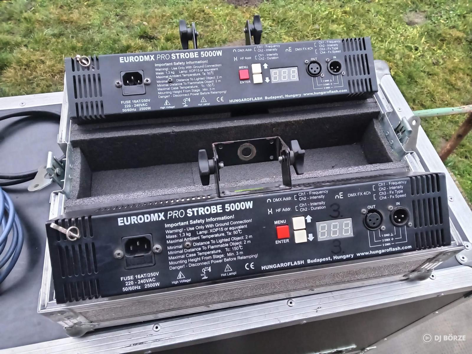 Eladó sorba került 2db Hungaroflash EURODMX PRO 5000W Stroboszkóp.Rack-el együtt.