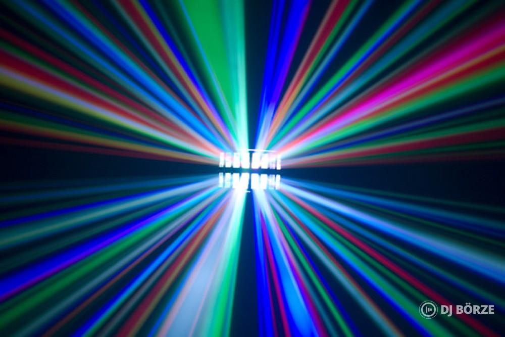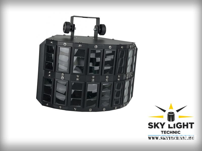 Ledes Derby Effekt, Kiváló, két db három soros lencse Derby hatás Fényforrás: 5 x 3 watt nagy teljesítményű LED- RGBWY 48 átlátszó üveg lencse, Zene- és DMX-vezérelt Master / slave üzemmód, Stroboszkóp üzemmód, Ragyogó színek.