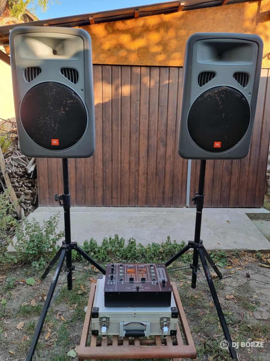 Eladó a képeken látható kis hangosítási szett. A szett tartalmaz 2 darab JBL EON 15P-1 aktív hangfalat, a hangfalakhoz tartozik 2 darab Proel hangfalállvány, 2 darab 15 méteres XLR-RCA jelkábel, 2 darab tápkábel, 2 darab 10 méteres hosszabbító, továbbá 1 darab Pioneer DJM 300 keverőpult alukofferrel együtt. A készülékek tökéletesen működnek, jó állapotúak, csak a korukból fakadó néhány esztétikai hiba van rajtuk. Kiválóan alkalmas kisebb hangosításokhoz, házibulikhoz. A szettet egyben szeretném eladni!