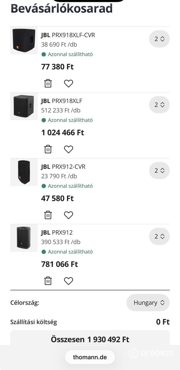 JBL PRX hangrendszer eladó. 2x PRX918XLF + 2x PRX912 (Garancia,hibátlan)