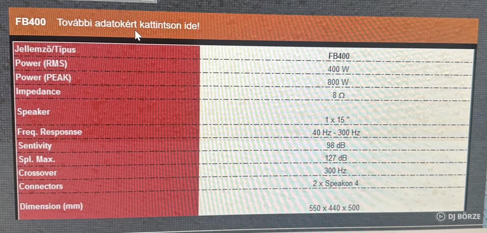 Eladó Jtc akustic top láda illetve mélyláda pár ! Itthoni használatra volt vásárolva az állapotuk tükrözi is .Top ládák amik 3 hangszórósak ami azt jelenti hogy a középső sugárzóba van benne a magas. 1 évesek már az új fajta (400/800)W , a mélyládák(400/800)W 2 évesek mind a 2 hangfal pár 8Ohmos . Ez a tényleges teljesítmény nem úgy mint némelyik gyártóknál. Rakok ki a képek közé adatlapot. A hangfalak külön is megvásárolhatóak a top pár 320.000ft a mélyládák 180.000ft .Komoly érdeklődés esetén további képeket tudok küldeni. A helyszínen kipróbálhatóak. A gyártó még ma is létezik magyarorsszágon .Köszönöm , hogy elolvasta hirdetésem. Tel.: +36303145733