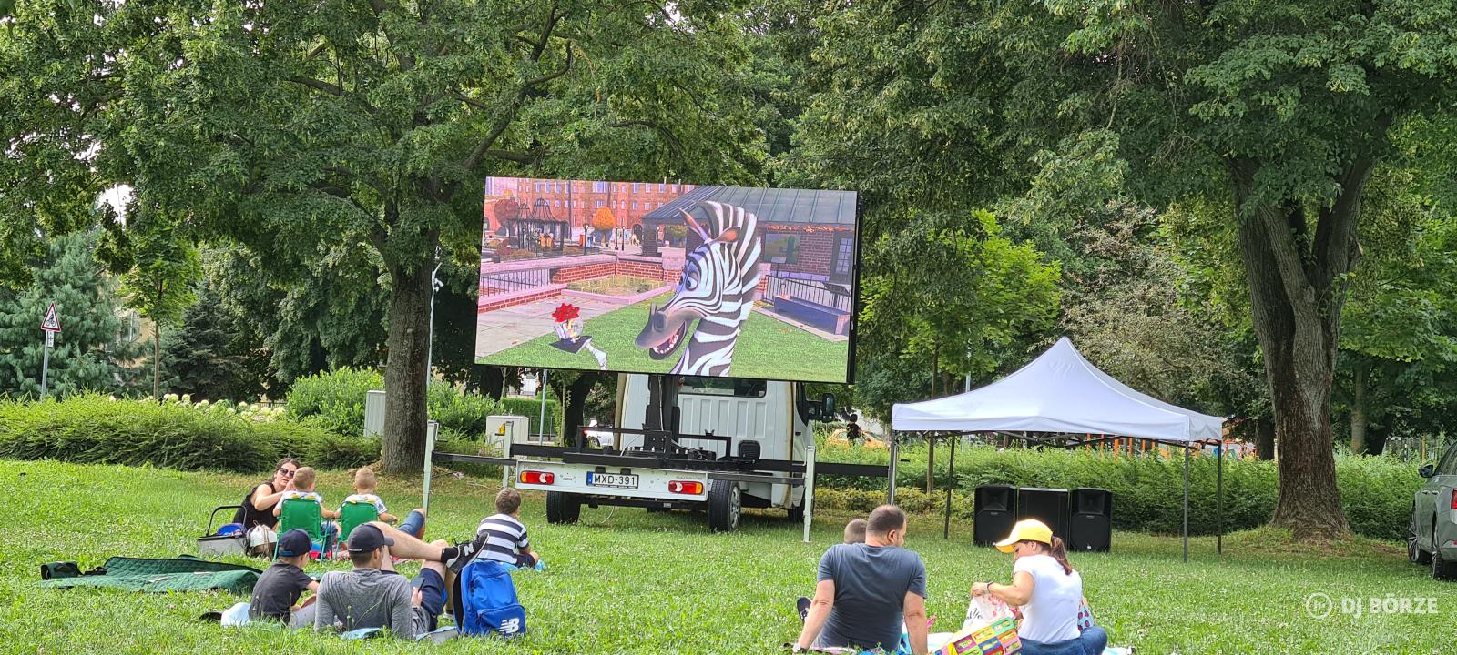 A hatalmas, nagy fényerejű LED kijelző (P4,81, 2x8m2, vagy kinyitva 1x16m2) minden napszakban tökéletesen látható.