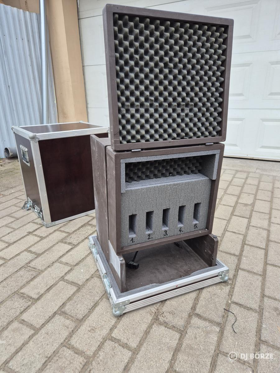 Eladó egy professzionális, egyedi gyártású szállítóláda (Flight Case), amely kifejezetten 5 darabos vezeték nélküli mikrofonrendszer kiszolgálására lett építve. Korábban Sennheiser szett üzemelt benne, ehhez lett minden kényelmi funkció kialakítva.