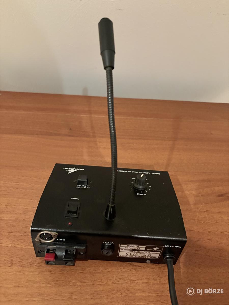 Kihasznalatlanság miatt eladó egy Monacor PAM-10 asztali mikrofon beépített erősítővel. Leírás a képek között Személyesen atveheto: Dömsöd vagy Kunszentmiklós Előre utalás esetén Foxpost automatába is fel tudom adni. Dj / stúdió/ hangtechnika csere érdekelhet. Köszönöm hogy elolvastad.