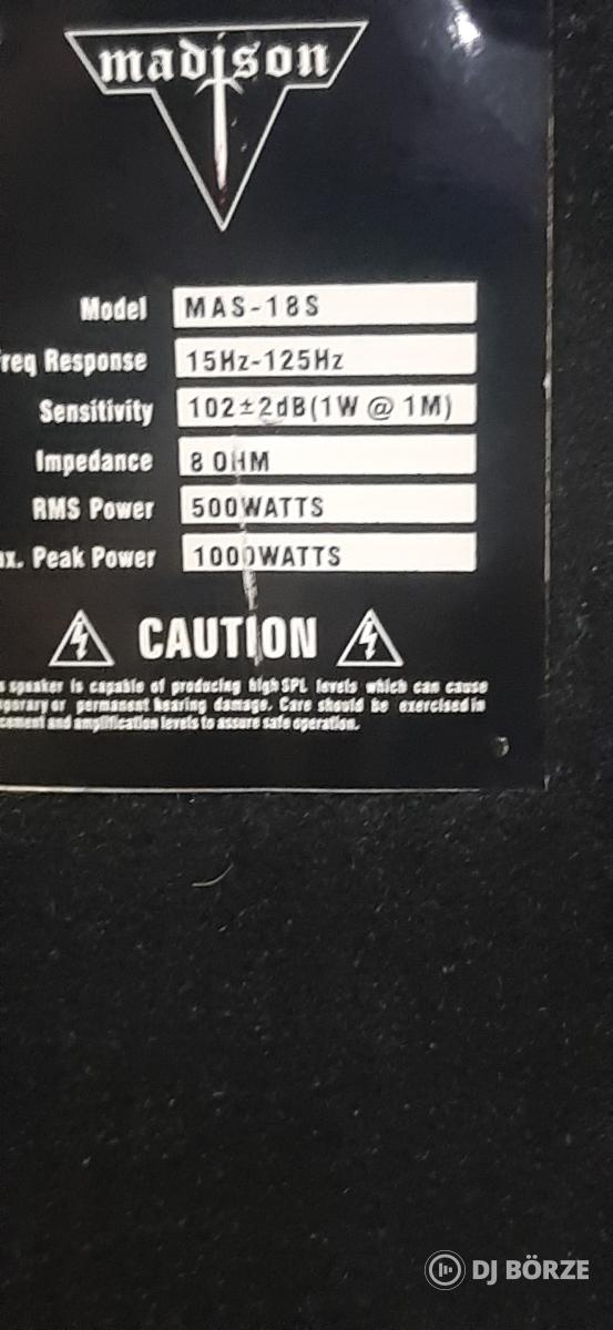 Eladó 2db Madison szub hangfal 18colos hangszóróval. Műszakilag esztétikailag rendben van. Csere alku köszönöm nem ár 60/db