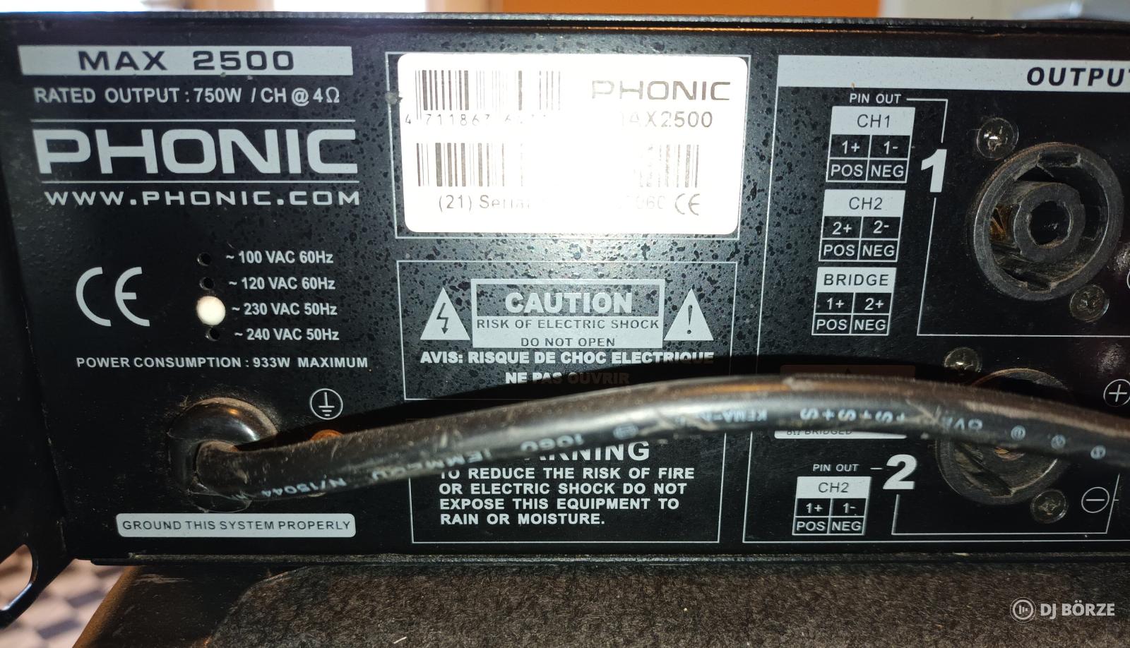 Eladó Phonic Max 2500-as végfok. 4ohm. 2x750W. 85000Ft.