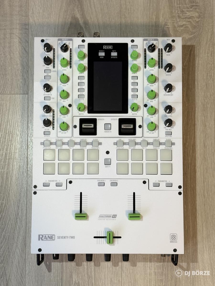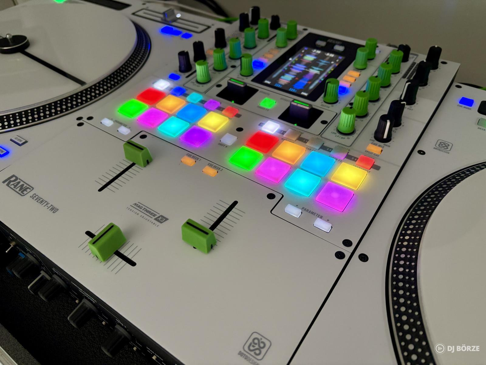 - fehér Rane controldisc-ek, alattuk Technics filcek, chroma knobs zöld, gumi potisapkák az egész keverőre / fekete gumi potisapkák (+ reloop knob csomagok, fehér, lila, kék, sárga)