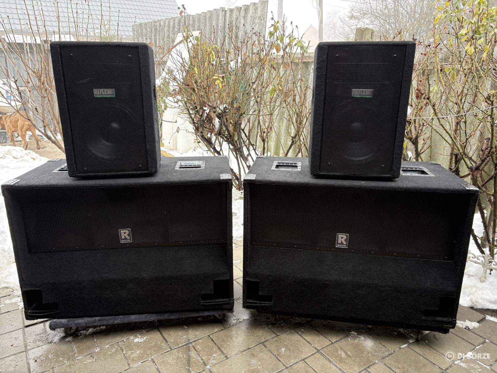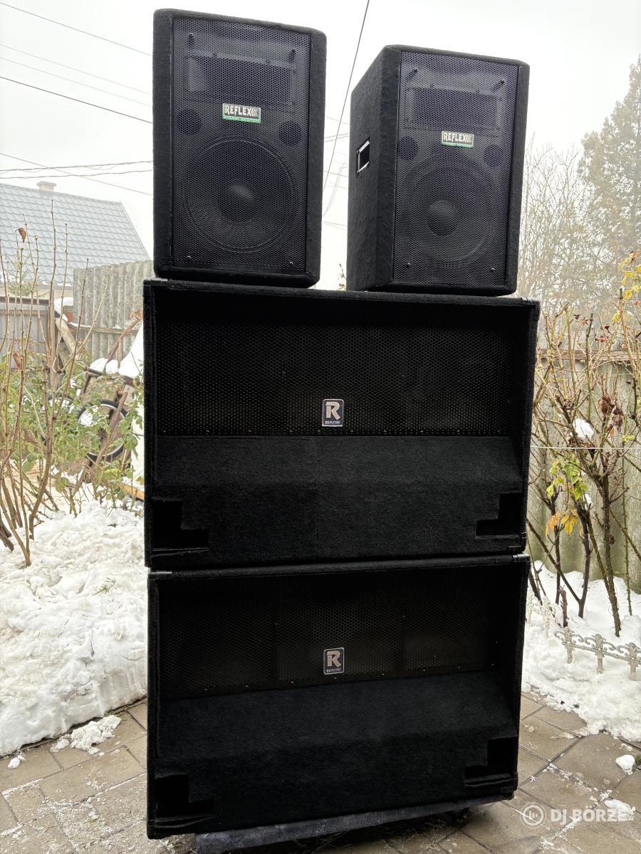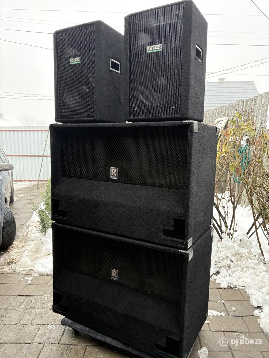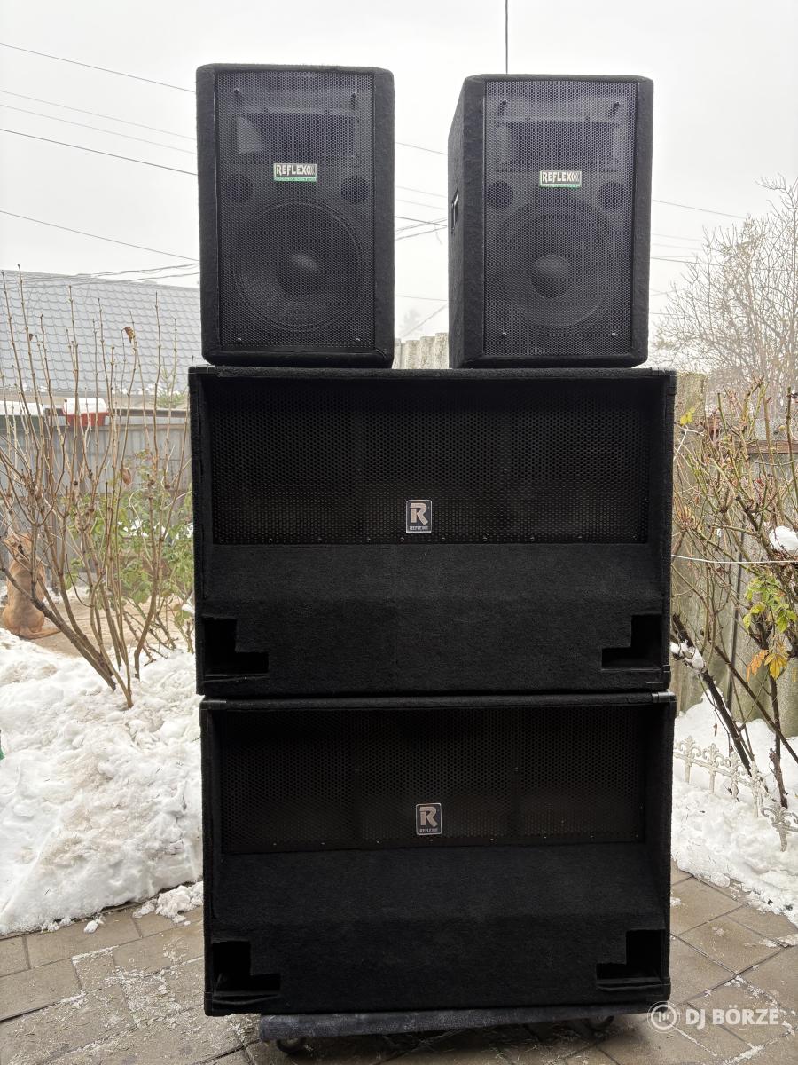 Elado Reflex szett Top: R150. 150/300W 12” 30cm 8ohm Mély : RTB NX 1000, 800/1600W. 2x15” 4ohm ————- Ár 320.000 Ft —————