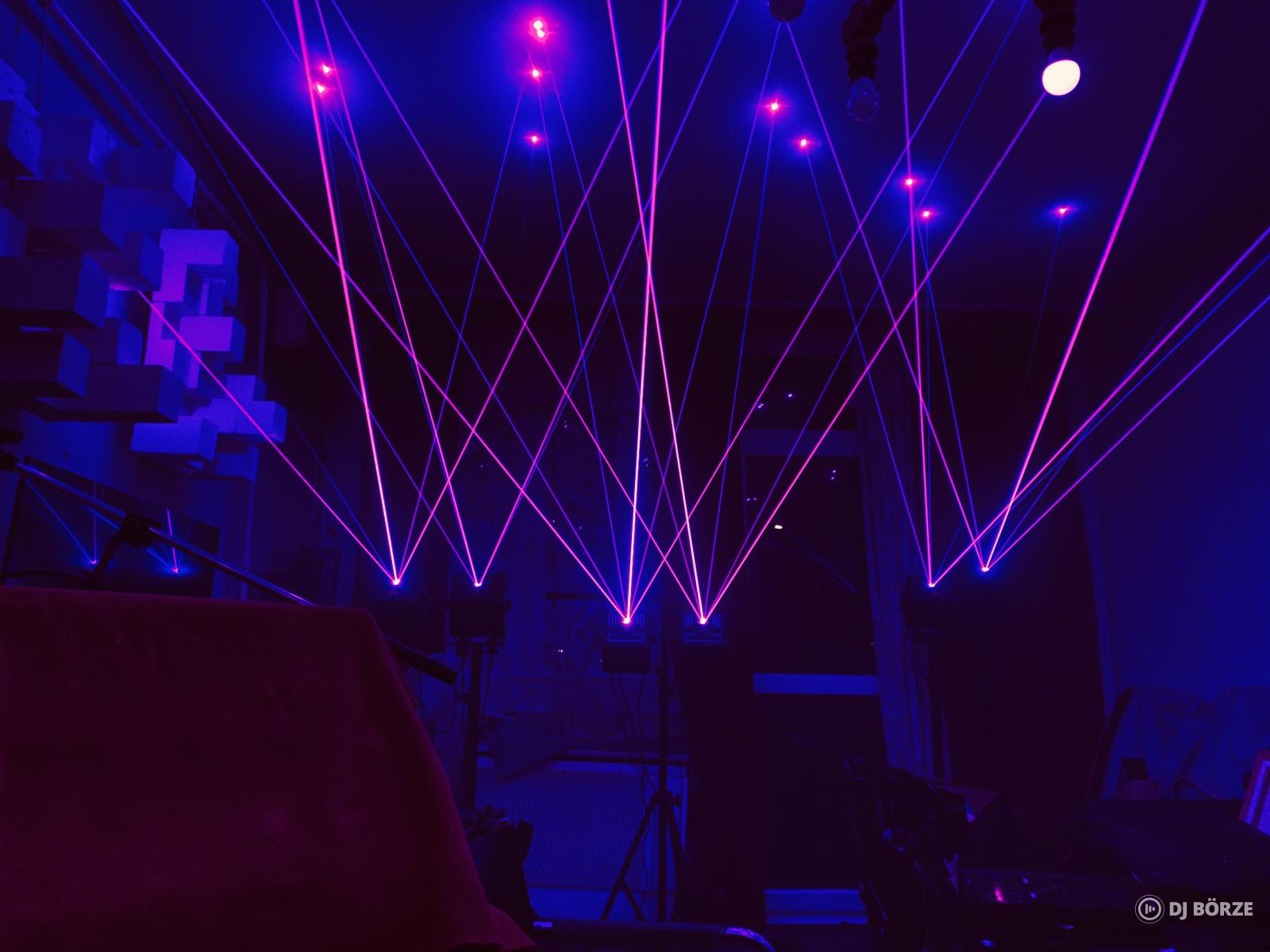 Vezérlés: ILDA, DMX 20ch, Zene, iOS, android app.