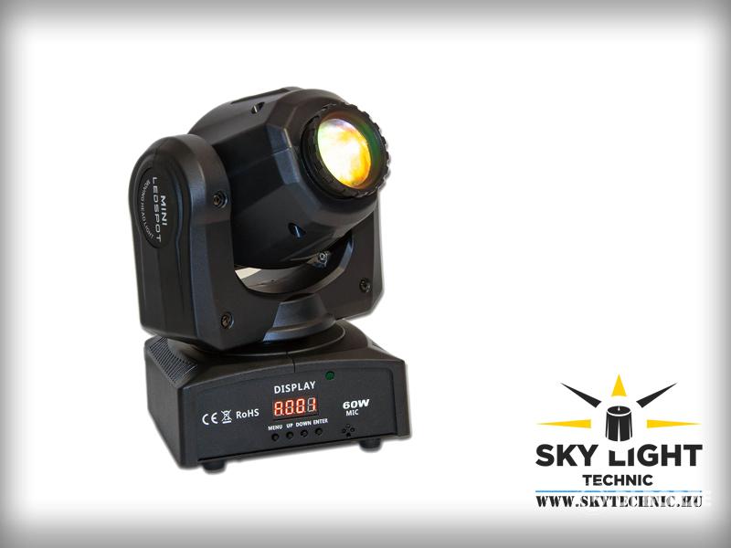 60W teljesítményű robotlámpa. Könnyedén kezelhető, egyszerűn beállítható.