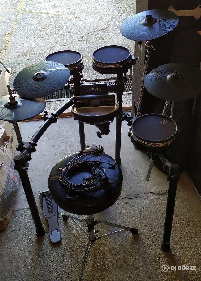 Roland elektromos dobszett 300.000 Ft Hálóbőrős padok és tartalék gumipadok Mindkét oldalon beütő Ipari rack doboz számítógépnek Némi felárért tudok hozzá stúdió PC-t adni, amivel élő koncerten késés nélkül lehet stúdió minőségű dobhangot ráhúzni