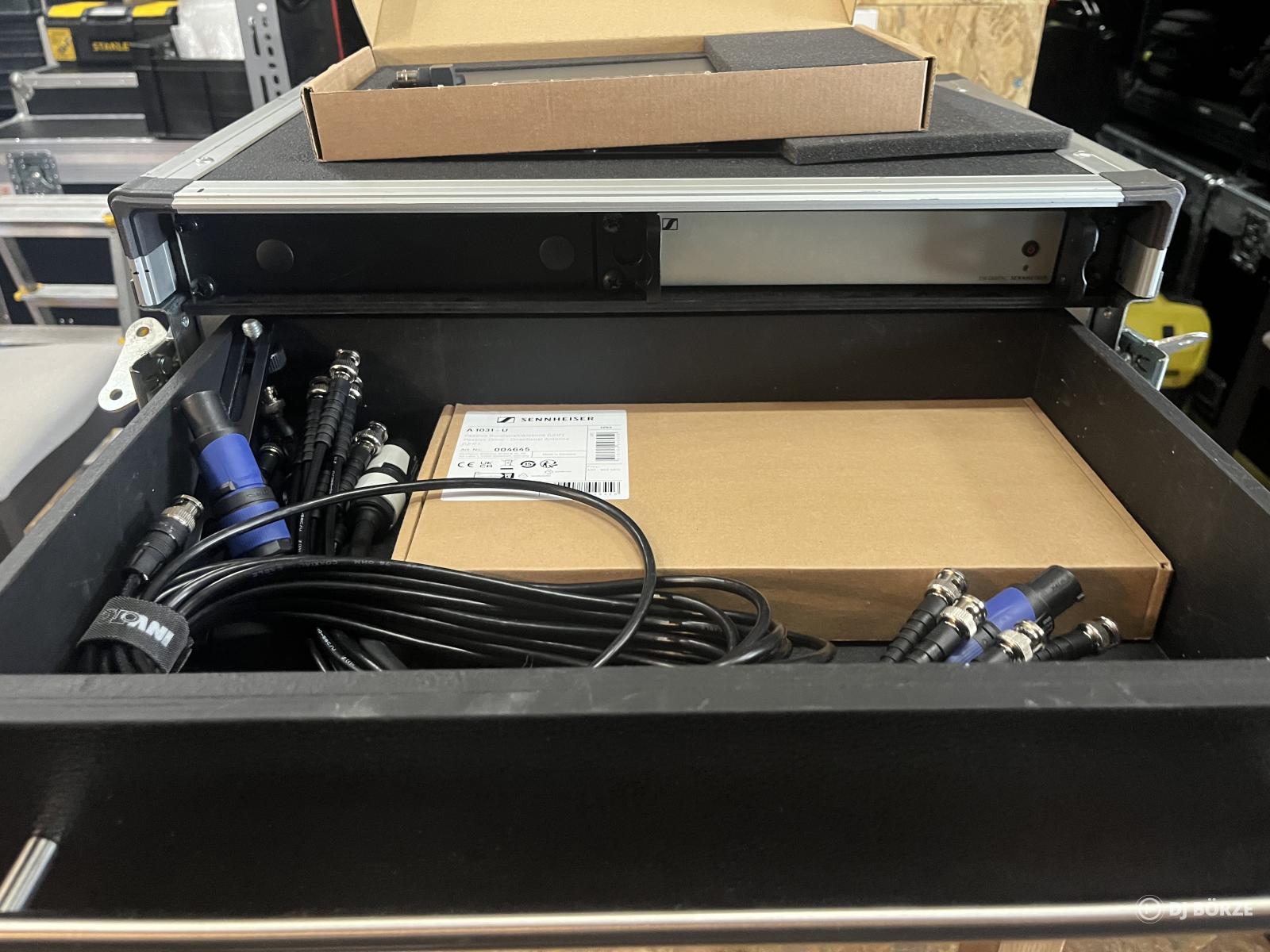 Sennheiser A1031 U antennával, rackesítve, használatra készen.