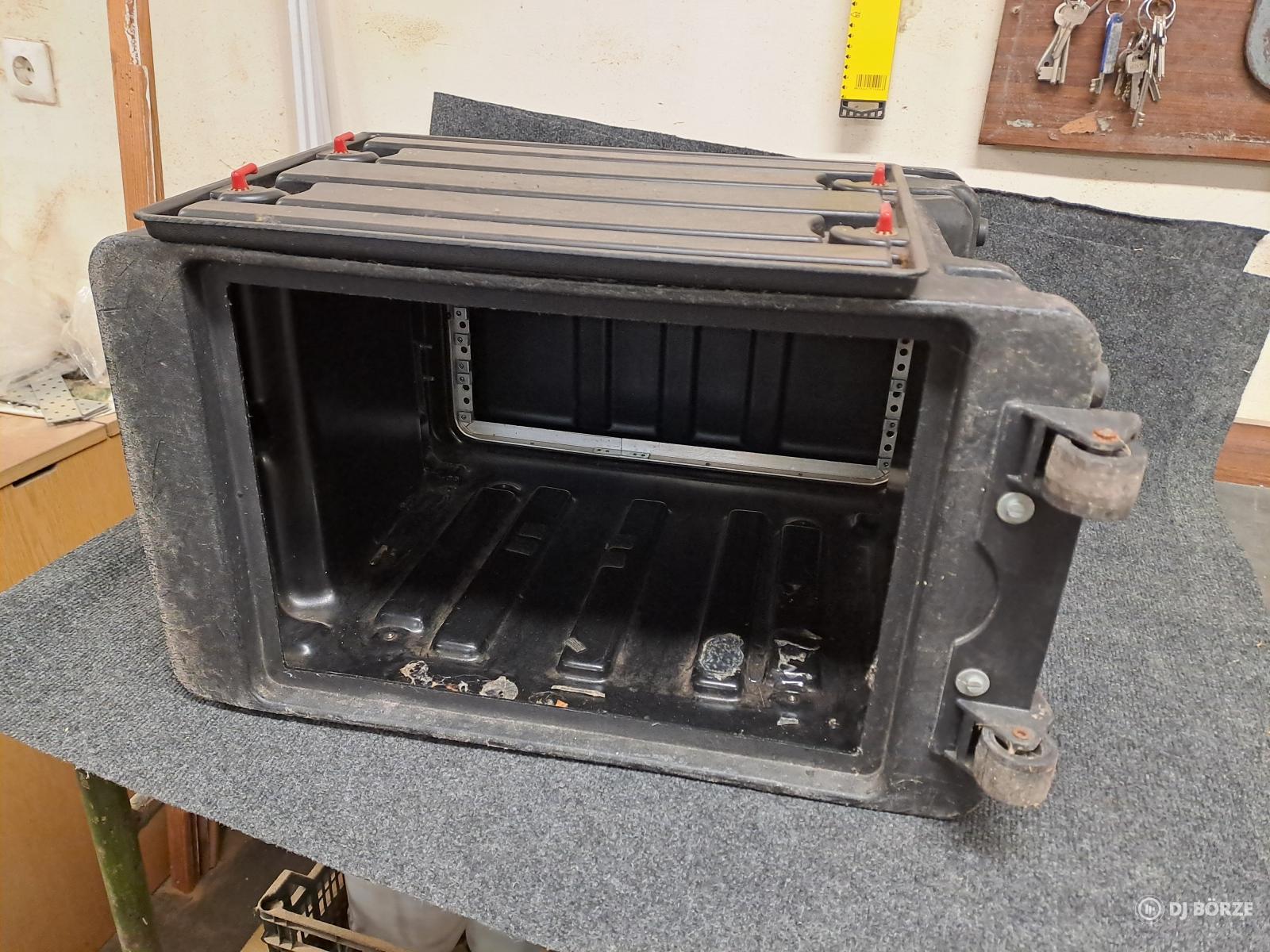 Eladó a fotón látható, használt, műanyag rack, konténer. Eleje, hátulja levehető, kerekeken gurul. Állapota nem a legszebb, ezért ennyi az ára.