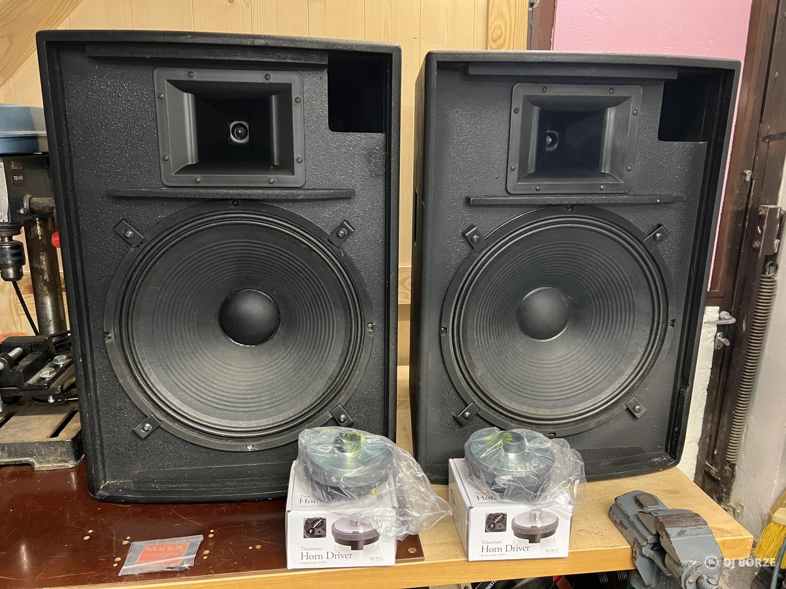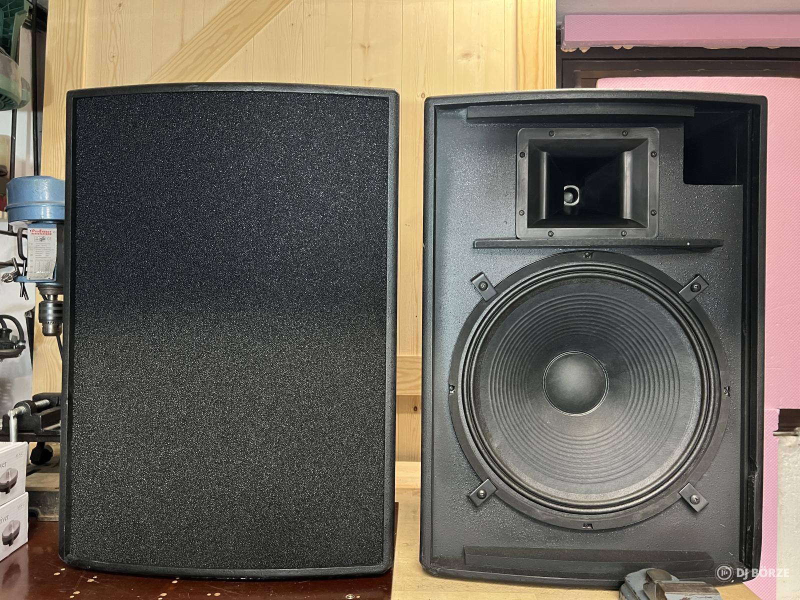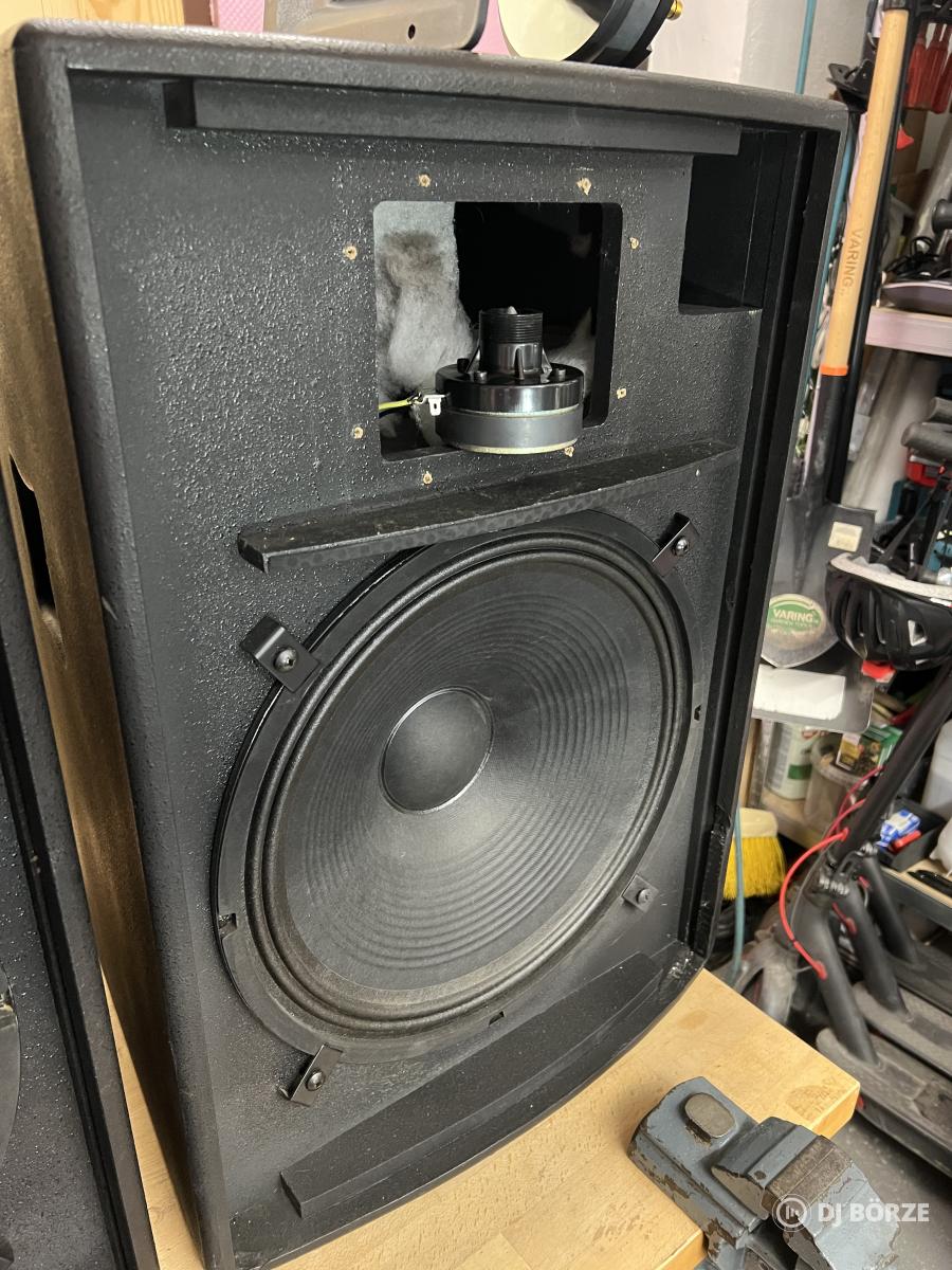 Fejlesztés miatt eladó egy pár szép állapotú Solton PL15 típusú, 300/600W, 8 ohm, 15”-os mélyszóróval (AA Craaft TC15/300 típus) szerelt fa topláda.