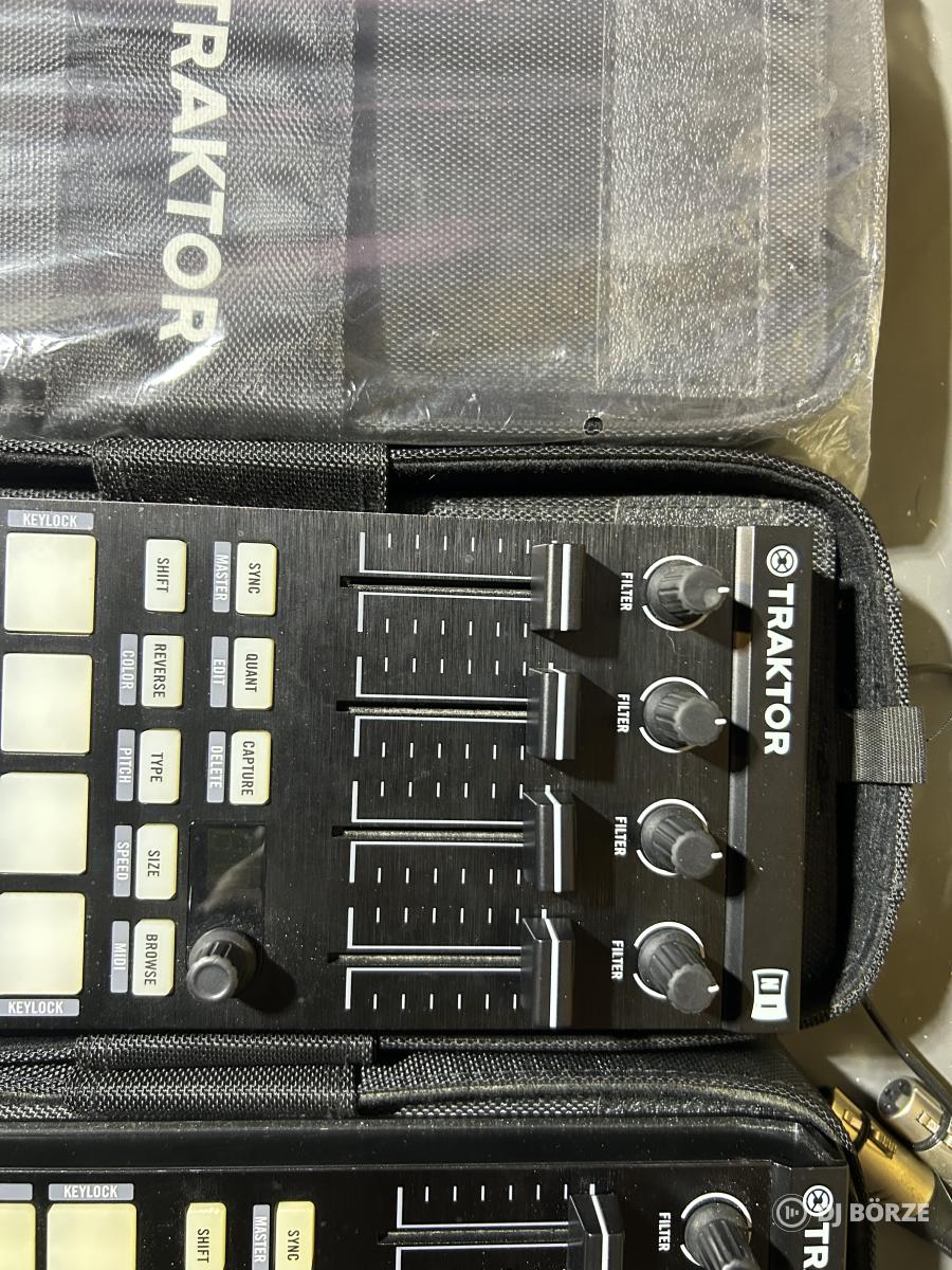Remix deck, Stems deck, Track deck vezérlés. 16 színes leütés érzékeny led pad, 64 loop, sávonként 4 hangminta, 4 db toló és forgó pótméter. Tökéletes kiegészítés Traktor Pro szoftverhez. Szép állapotban. Usb kábelek, dobozaik, és 3 db (1 új) Traktor F1 tok/tartó. Csak párban eladó.