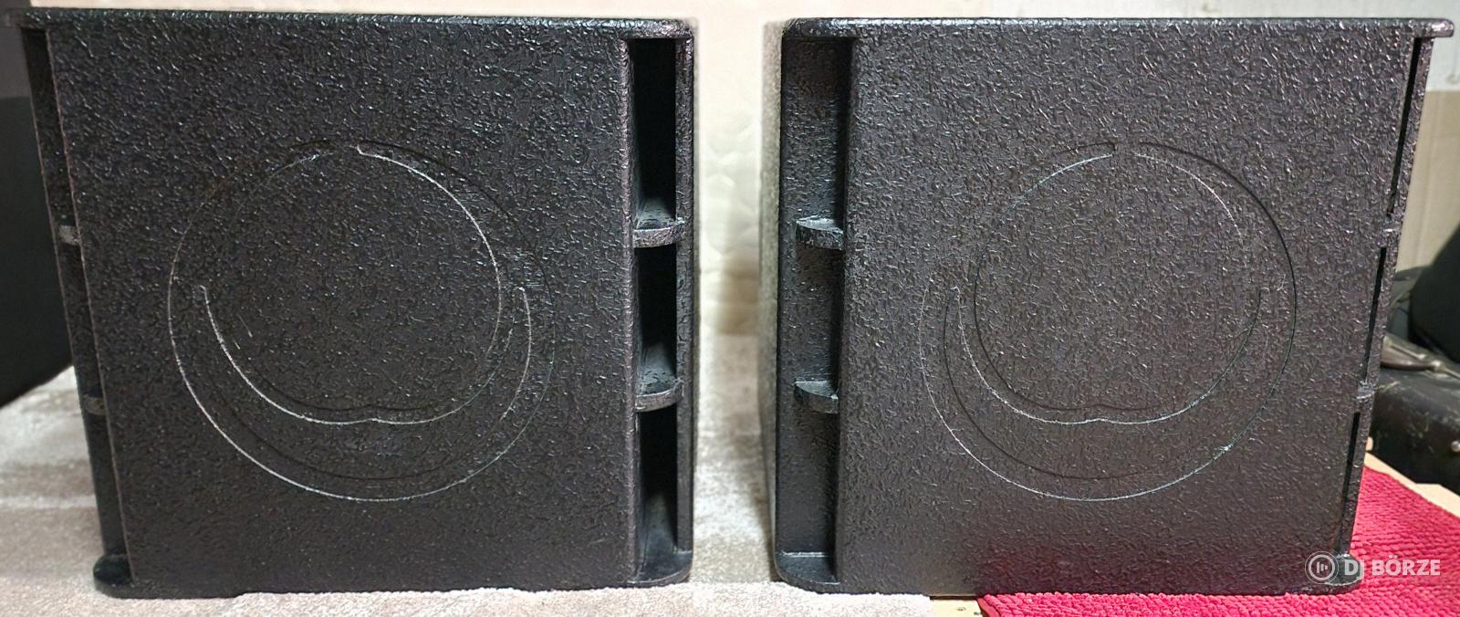 Eladó a képeken látható Turbosound Milan M15B aktív mélyláda pár. 2200W (RMS: 1100W) Max. SPL: 134dB 15" mélysugárzó Polaritás és boost kapcsoló. Frekvencia tartomány: 45 - 100Hz (±3 dB) 35 - 150Hz (-10 dB) Boost frekvencia: 40 - 90Hz (+6 dB) Súly: 37kg Megkímélt állapotban, puhatokkal. Javítva és bontva sosem volt. Csak párban eladó, és csere nem érdekel! Ára: 420.000 Ft