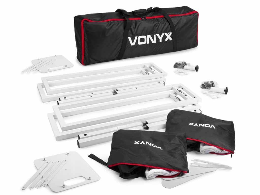 Fejlesztés miatt eladó egy Vonyx DJP165 DJ oszlop szett és hordtáska. Esküvői és rendezvény DJ-knek, zenekaroknak ideális megjelenést biztosít. Robot, vagy diszkólámpa, illetve egy adapter segítségével akár hangfal is telepíthető rá. Állítható magasság, egyszerű telepítés, kiváló megjelenés. Fehér és fekete anyaggal is burkolható, ami természetesen jár a szetthez.