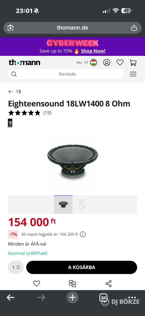 💥 Fontos! Egy darab Eighteensound 18LW1400 hangszóró jelenlegi ára 154 000 Ft a Thomann-nál (lásd a képet).