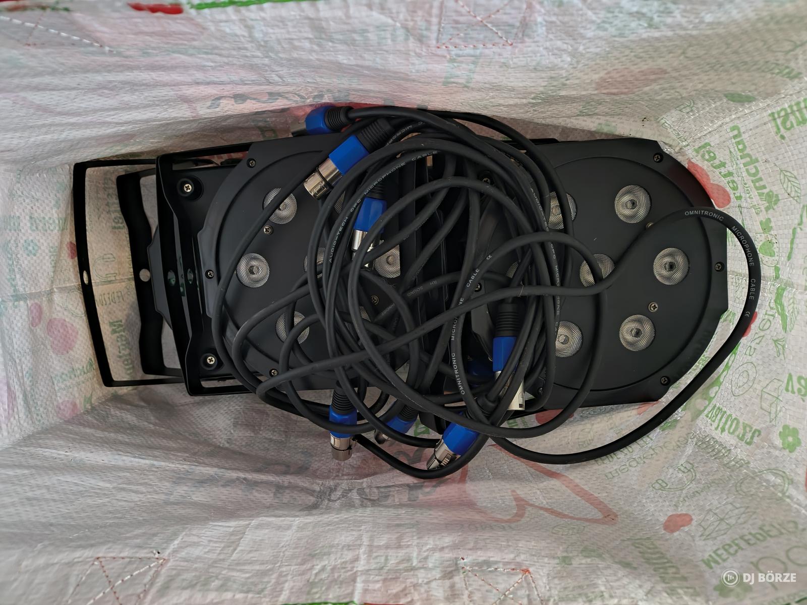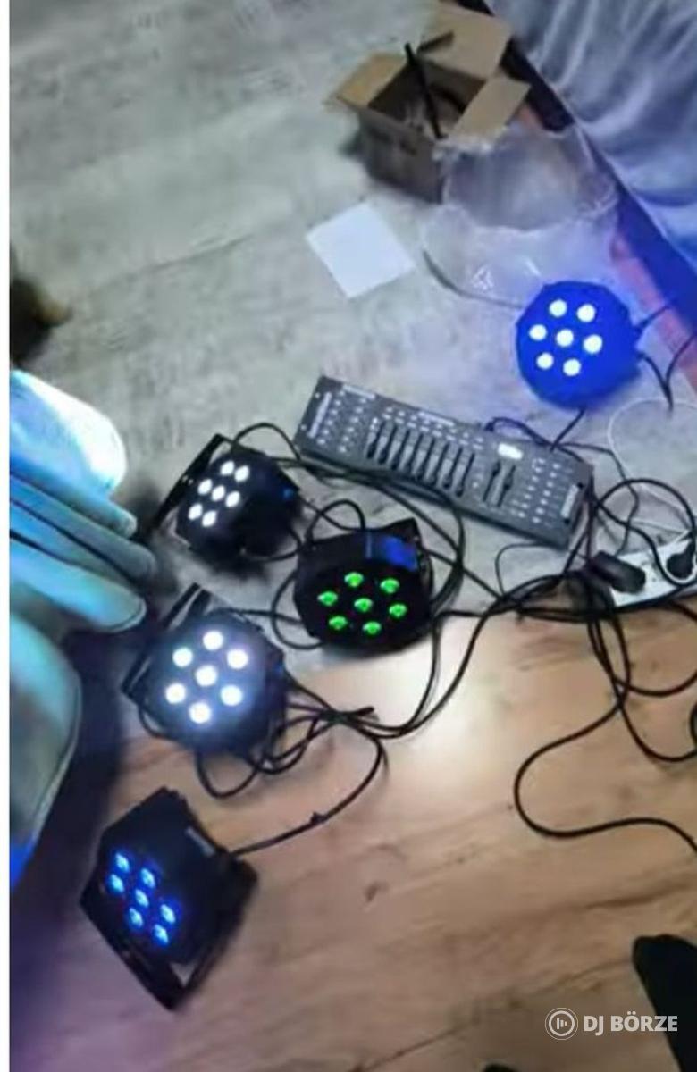 Az alábbi fénytechnikai eszközöket adnám egyben. 5 db Rgbw led par 7x12w fűzhető táp 230v! + DMX 512 vezérlő 4 lámpa jó, működik, együttdolgozik a vezérlővel. Az 5. lámpa kéken világít, vezérelhető. Lehet, hogy javítható, nem szedtem szét. Vannak hozzá kábelek, mondjuk 4-re. DMX és táp soroló. A DMX vezérlőhöz meg van a táp és a használati utasítás. Tudok adni 4 lyukas T tartót, hangszóró álványba tehető.