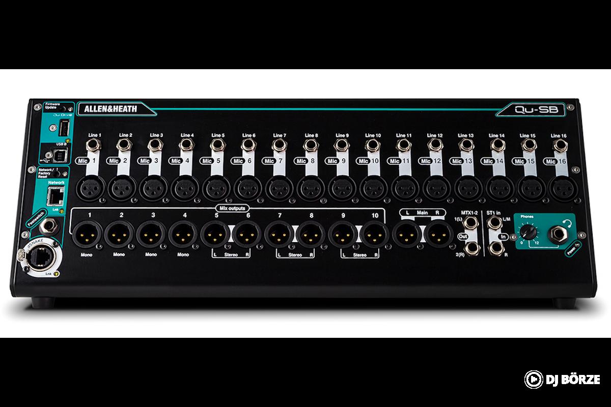 Az Allen & Heath Qu-SB 16 db helyi XLR mikrofon/vonalbemenetet tartalmaz, összesen 32 mono csatornával és 3 sztereó bemeneti csatornával. A keverő 12 mix buszt és LR fő kimenetet kezel, 96 kHz-es belső jelfeldolgozással. Minden csatornán elérhető az Allen & Heath saját fejlesztésű FPGA alapú DSP motorja, amely kompresszort, gate-et, parametrikus EQ-t és fejhallgató-mixen alapuló monitorzást biztosít. A készülék 3U rack méretű, dSNAKE csatlakozóval rendelkezik.